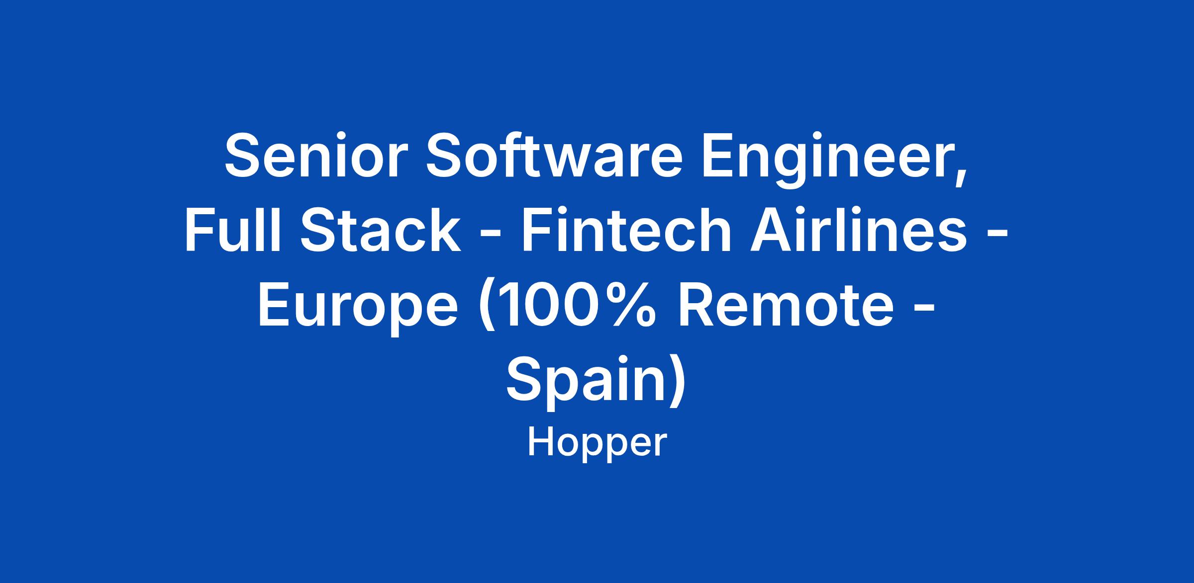 Senior Software Engineer, Full Stack - Fintech Airlines - Europe (100% Remote - Spain)