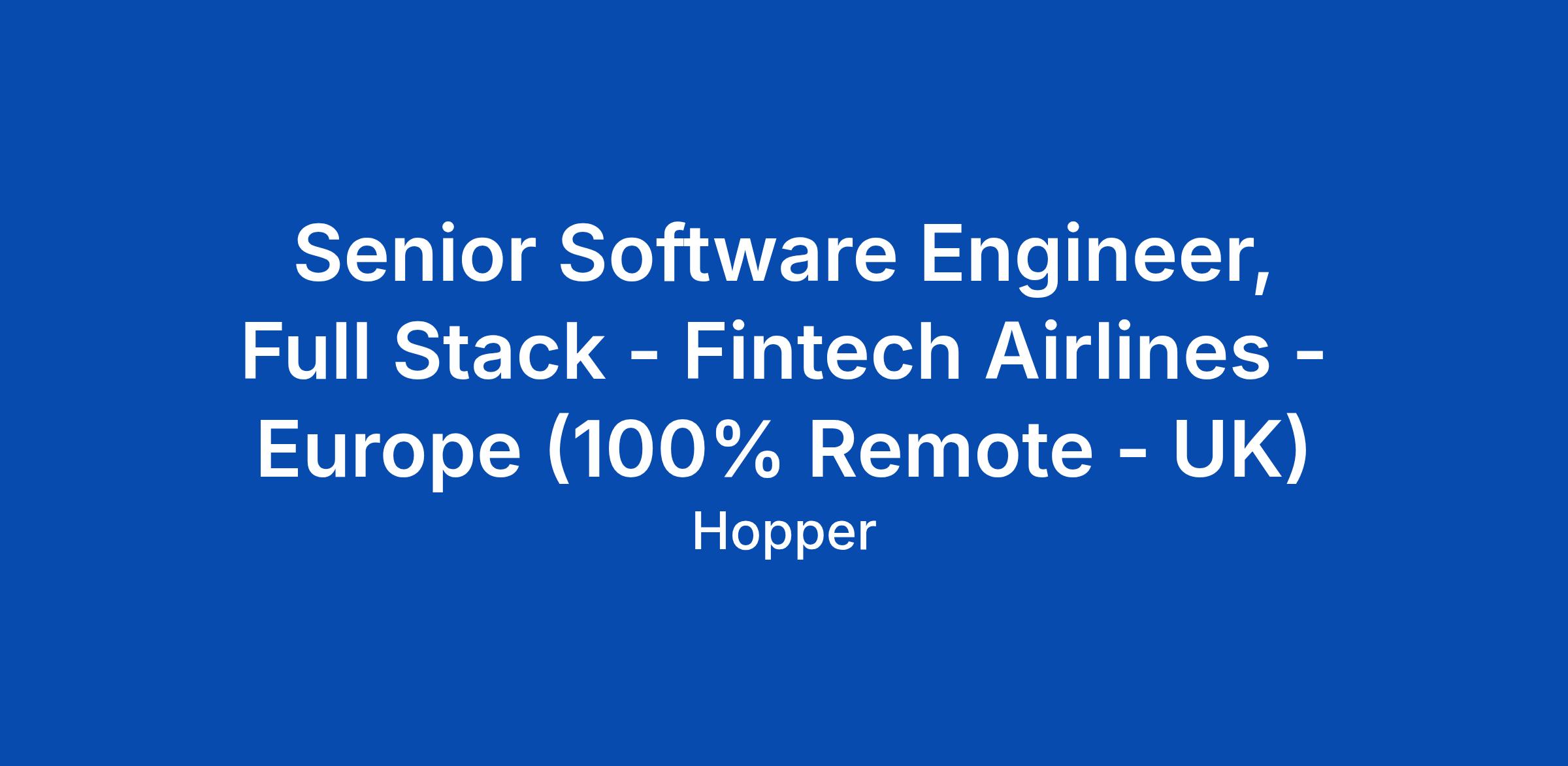 Senior Software Engineer, Full Stack - Fintech Airlines - Europe (100% Remote - UK)