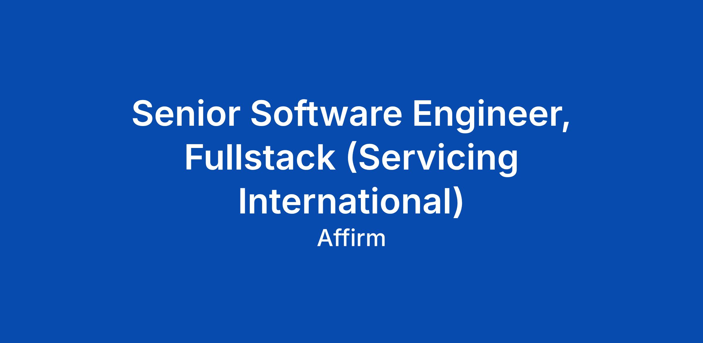 Senior Software Engineer, Fullstack (Servicing International)