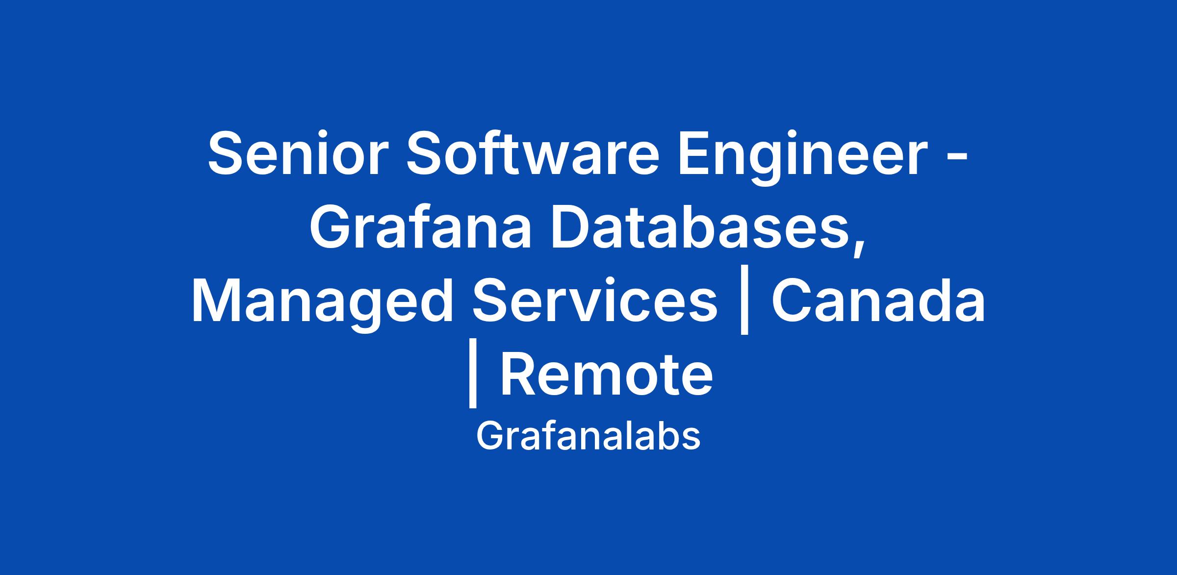 Senior Software Engineer - Grafana Databases, Managed Services | Canada | Remote