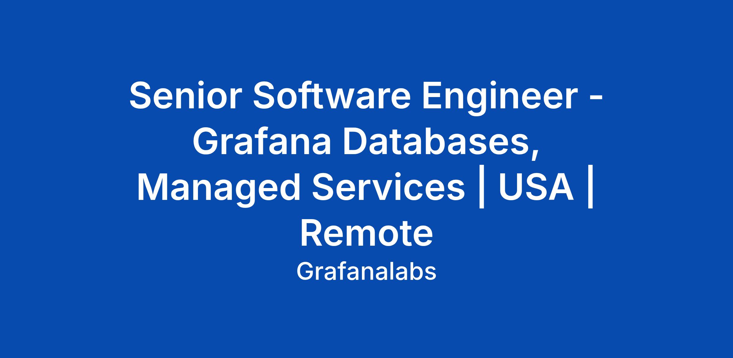 Senior Software Engineer - Grafana Databases, Managed Services | USA | Remote