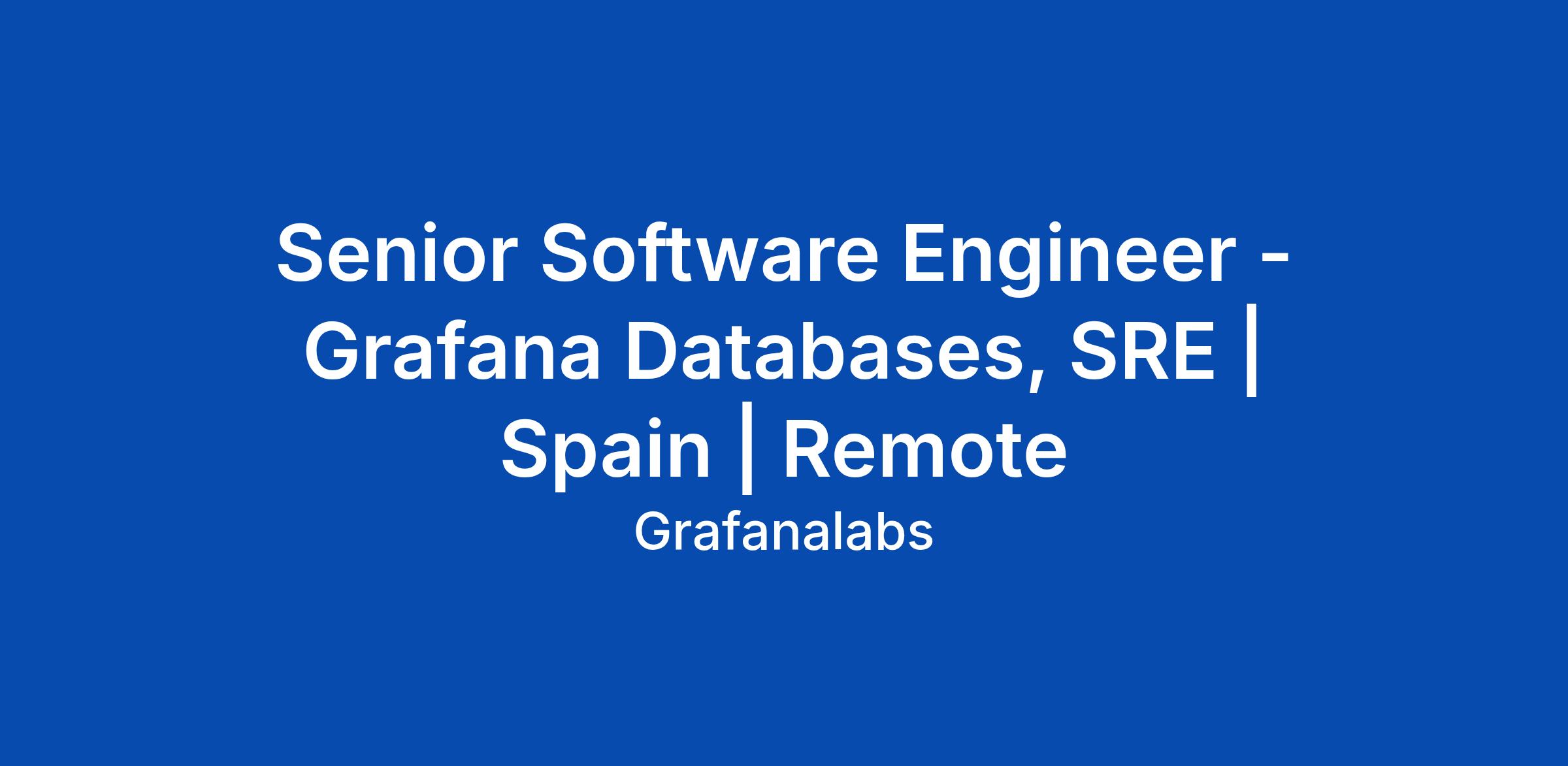 Senior Software Engineer - Grafana Databases, SRE | Spain | Remote