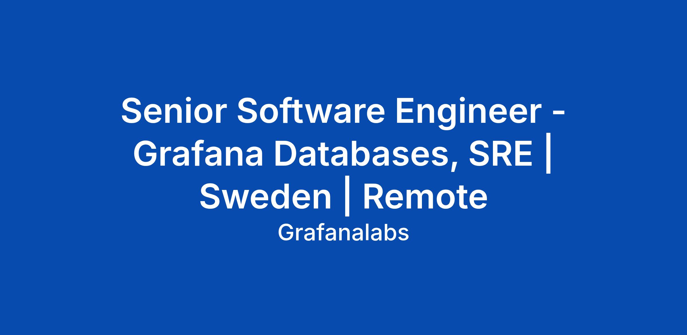 Senior Software Engineer - Grafana Databases, SRE | Sweden | Remote