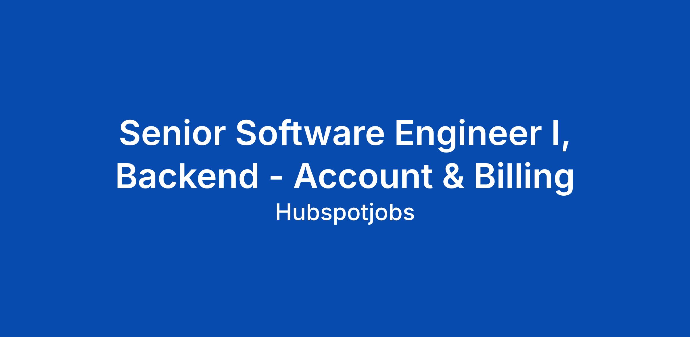 Senior Software Engineer I, Backend - Account & Billing