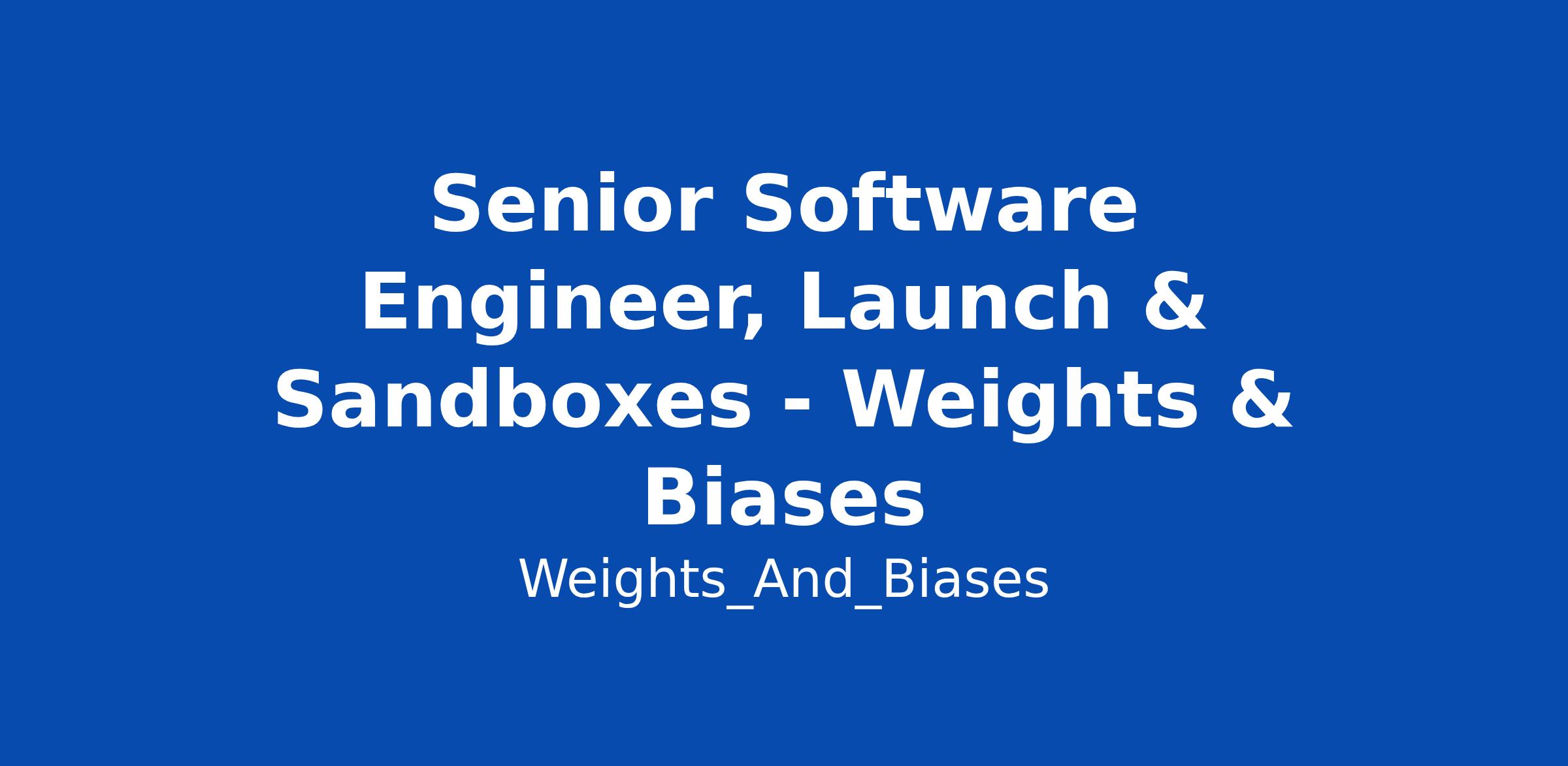Senior Software Engineer, Launch & Sandboxes - Weights & Biases