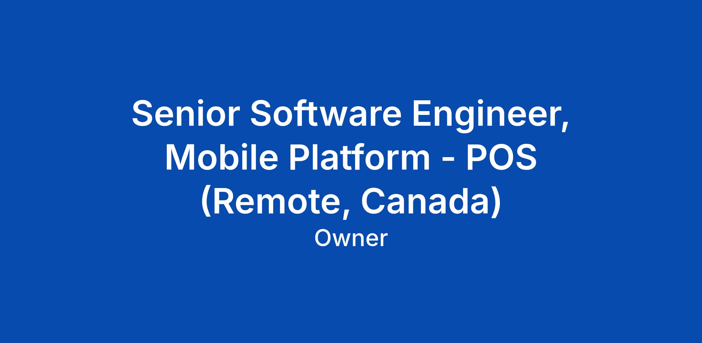 Senior Software Engineer, Mobile Platform - POS (Remote, Canada)