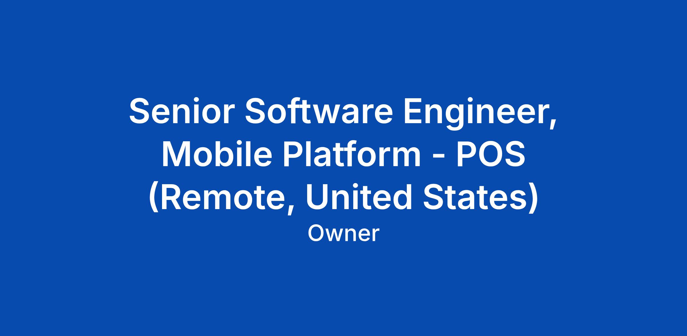 Senior Software Engineer, Mobile Platform - POS (Remote, United States)