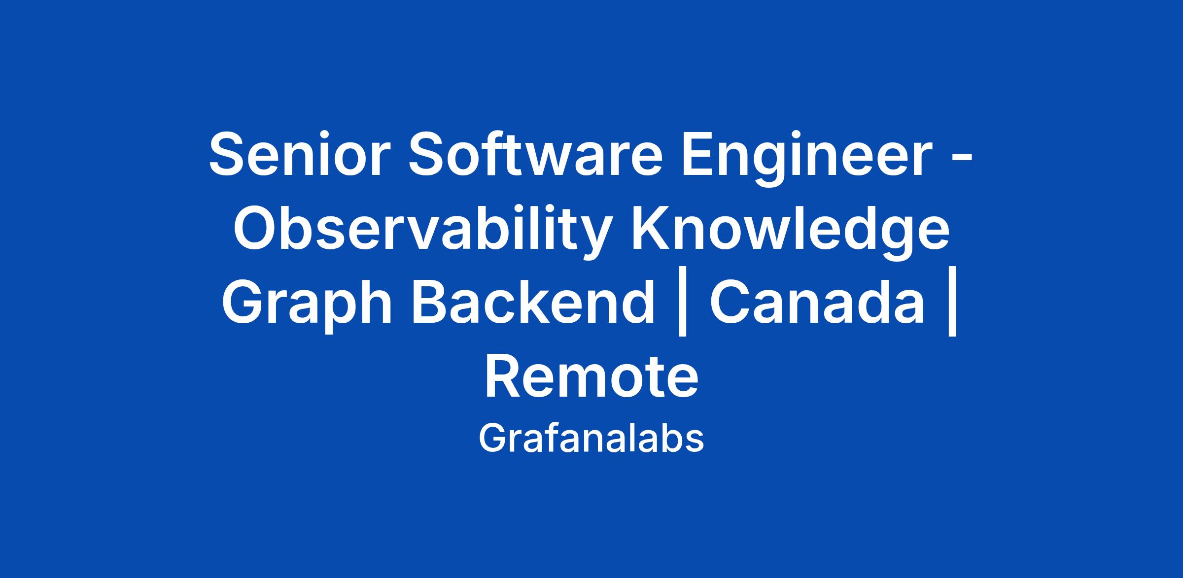 Senior Software Engineer - Observability Knowledge Graph Backend | Canada | Remote