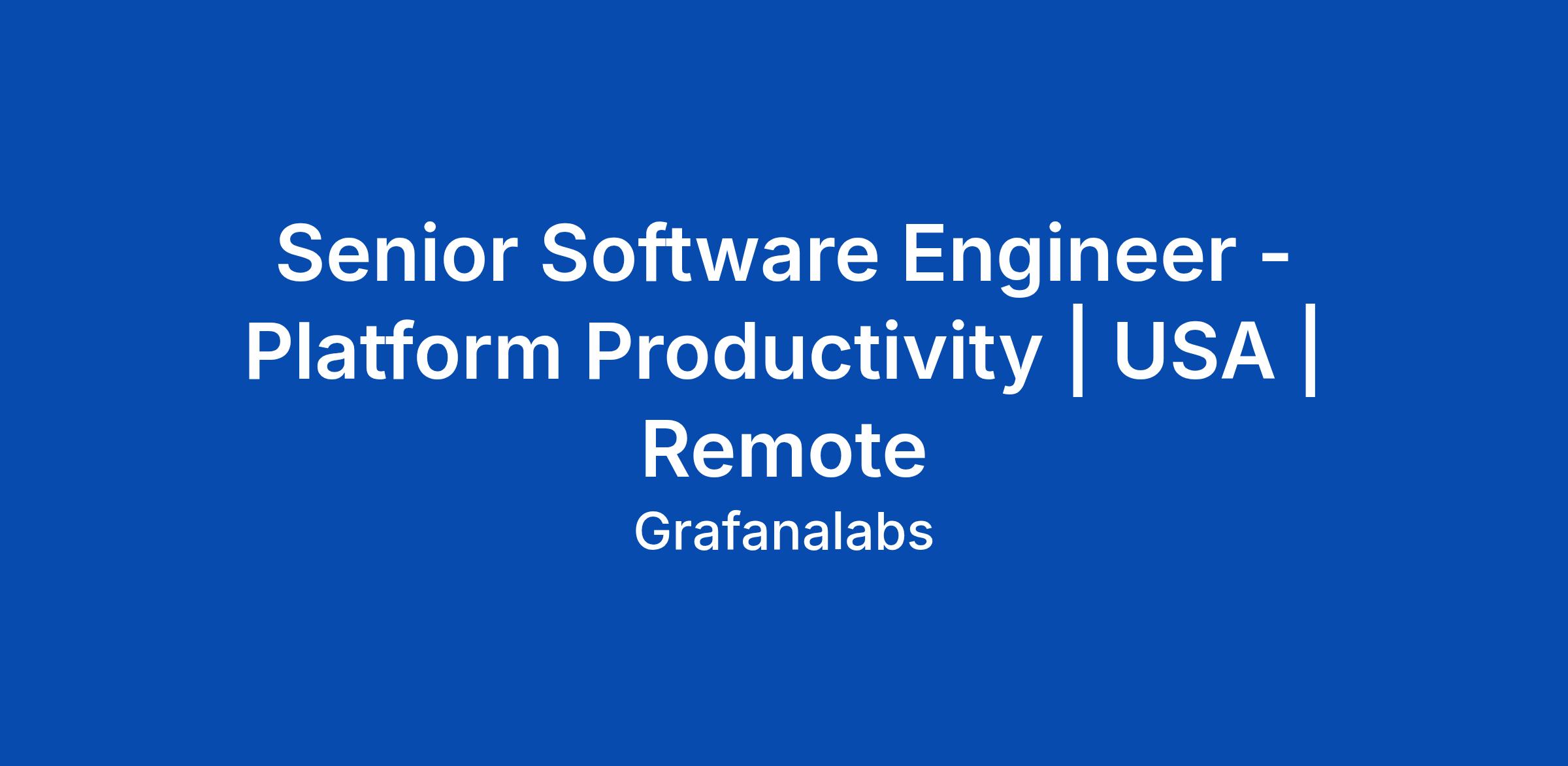 Senior Software Engineer - Platform Productivity | USA | Remote