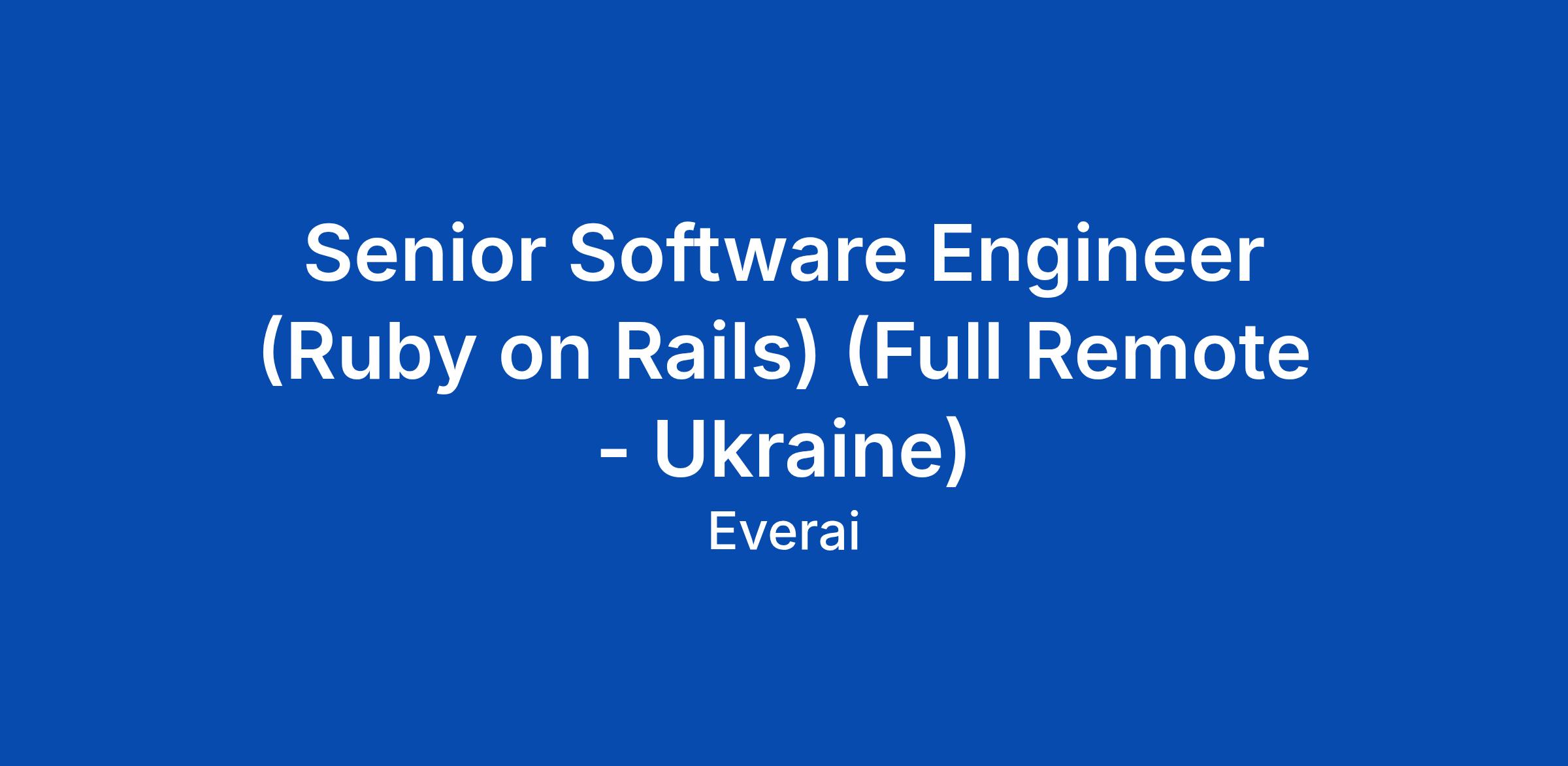 Senior Software Engineer (Ruby on Rails) (Full Remote - Ukraine)