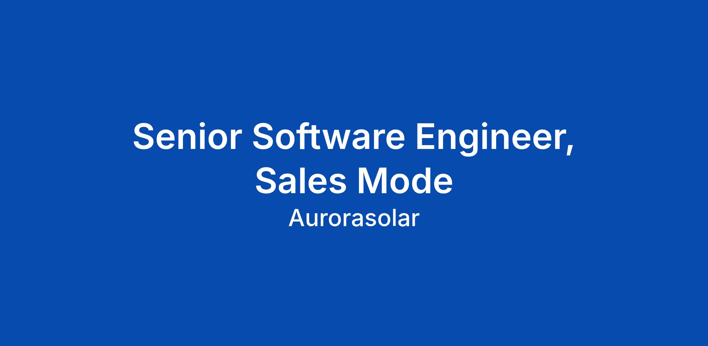 About Aurora Solar Aurora is on a mission to create a future of solar for all. Our award-winning software puts the power of data and technology into the hands of every solar professional to make solar adoption simple and predictable. Our software has designed millions of solar projects so far, empowering solar companies to sell, design, and install residential and commercial solar arrays accurately, seamlessly, and at scale. We’ve been named one of "The Best Remote Companies To Work for in 2025" by BuiltIn.com https://builtin.com/company/aurora-solar and have been recognized for the second time as a Certified Green Business (CGB) with the city of San Francisco. We’re in this together to support the world’s transition to solar. About the Team We’re building the future of the solar sales experience. We own Aurora’s sales narrative platform and the financial integrations that help solar professionals present clear, customized, homeowner-first proposals. Our mission is simple and ambitious: empower our customers to communicate value with confidence and deliver financing options that fit real customer needs. We’re a collaborative, inclusive group that believes shared knowledge fuels bet