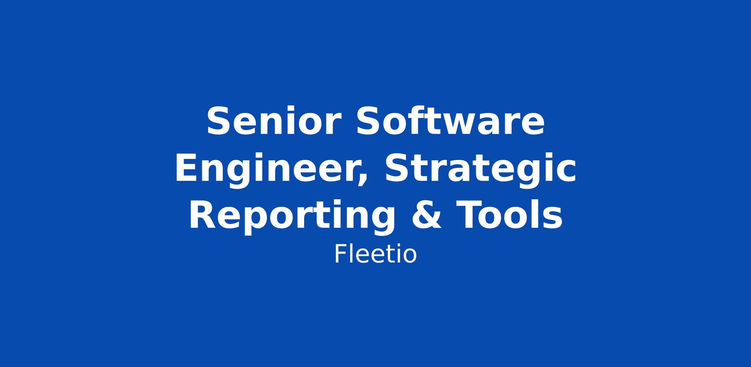 Fleetio is looking for a self-driven and product-minded Senior Software Engineer to join our Strategic Reporting & Tools team of our product. Thi... Click Apply to read the full job description.