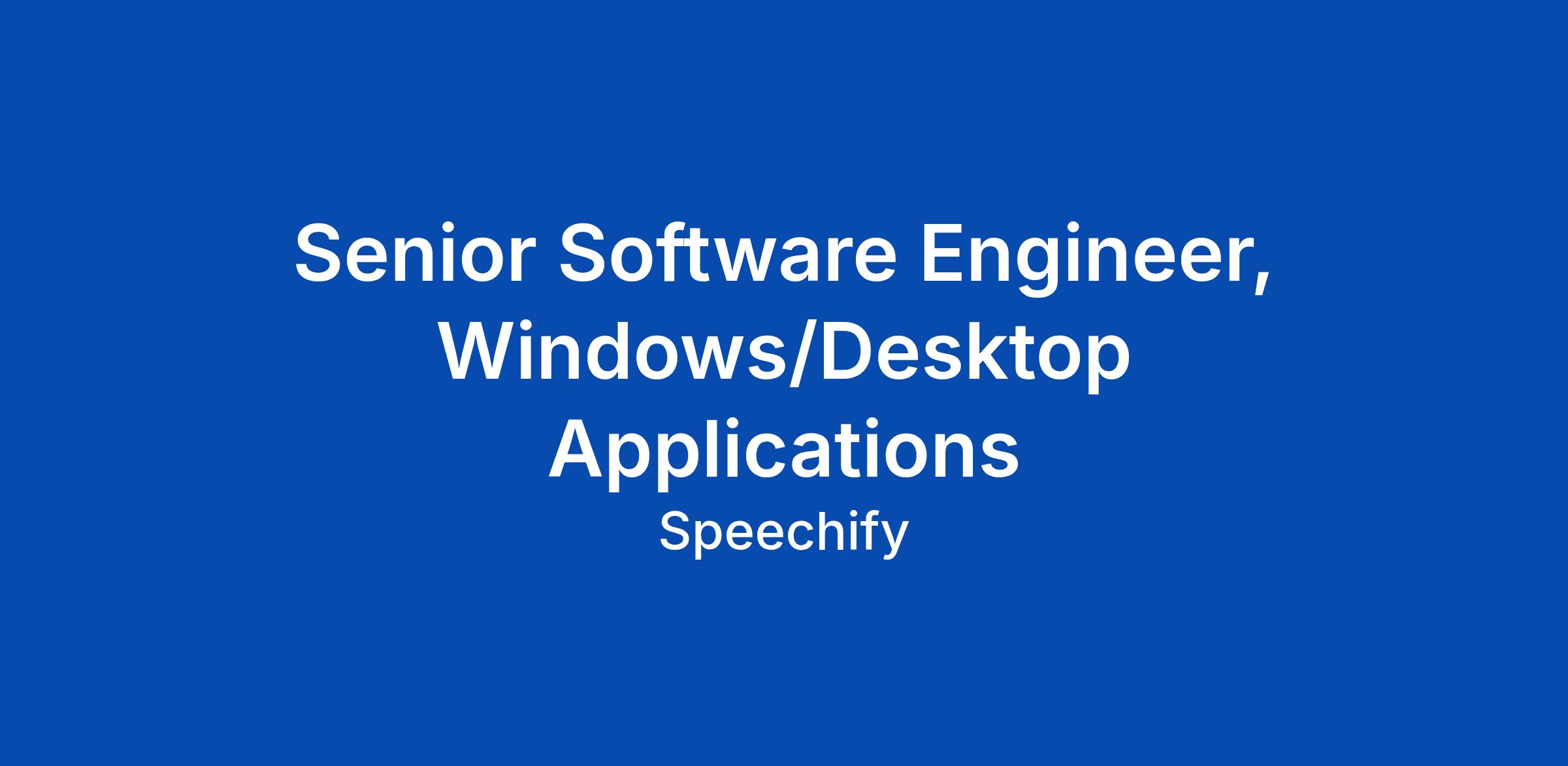 Senior Software Engineer, Windows/Desktop Applications