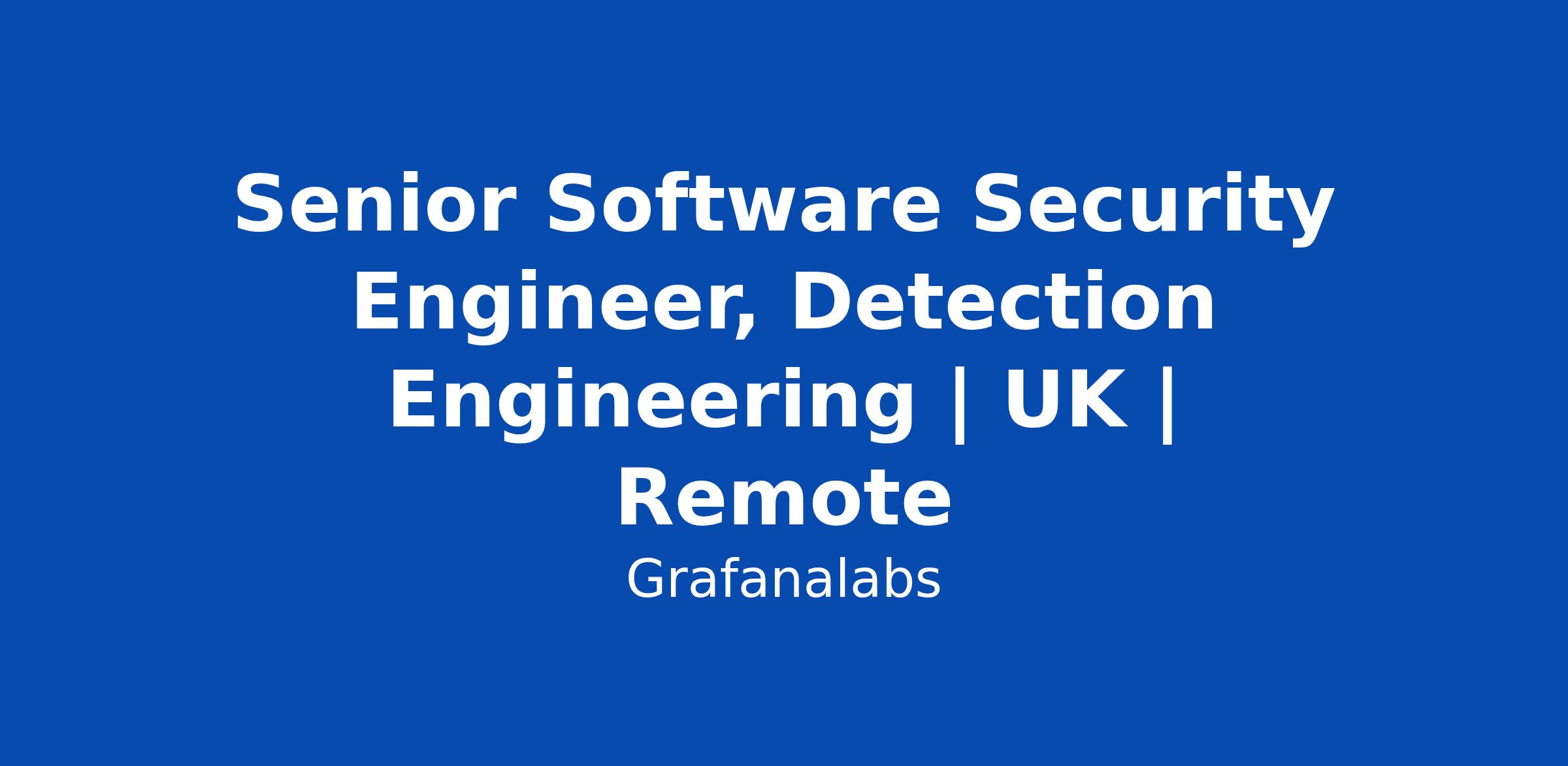 Senior Software Security Engineer, Detection Engineering | UK | Remote