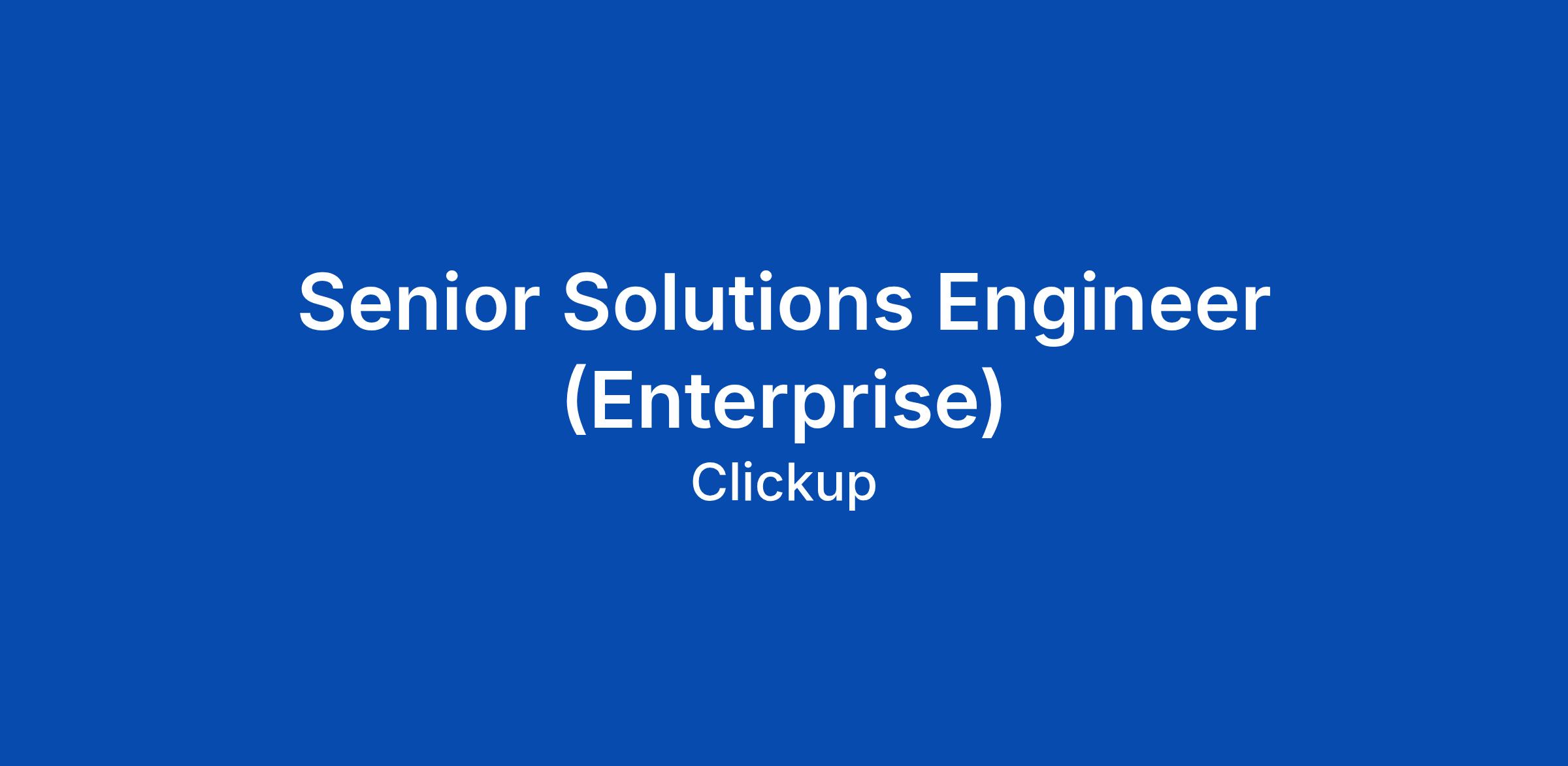 At ClickUp, we’re not just building software. We’re architecting the future of work! In a world overwhelmed by work sprawl, we saw a better way. That’s why we created the first truly converged AI workspace, unifying tasks, docs, chat, calendar, and enterprise search, all supercharged by context-driven AI, empowering millions of teams to break free from silos, reclaim their time, and unlock new levels of productivity. At ClickUp, you’ll have the opportunity to learn, use, and pioneer AI in ways that shape not only our product, but the future of work itself. Join us and be part of a bold, innovative team that’s redefining what’s possible! 🚀 This is a once-in-a-lifetime opportunity to join a hyper-growth startup focused on saving people time and making the world more productive! ClickUp is looking for a solutions engineer to serve as a technical partner to our Sales and Success orgs for bringing in net new customers, expanding existing accounts, and accelerating our revenue growth. The ideal candidate is a strong strategic thinker, skilled presenter, and has enough technical aptitude to figure out solutions for any technical challenges clients experience. Teamwork is vital to how Clic... Click Apply to read the full job description.