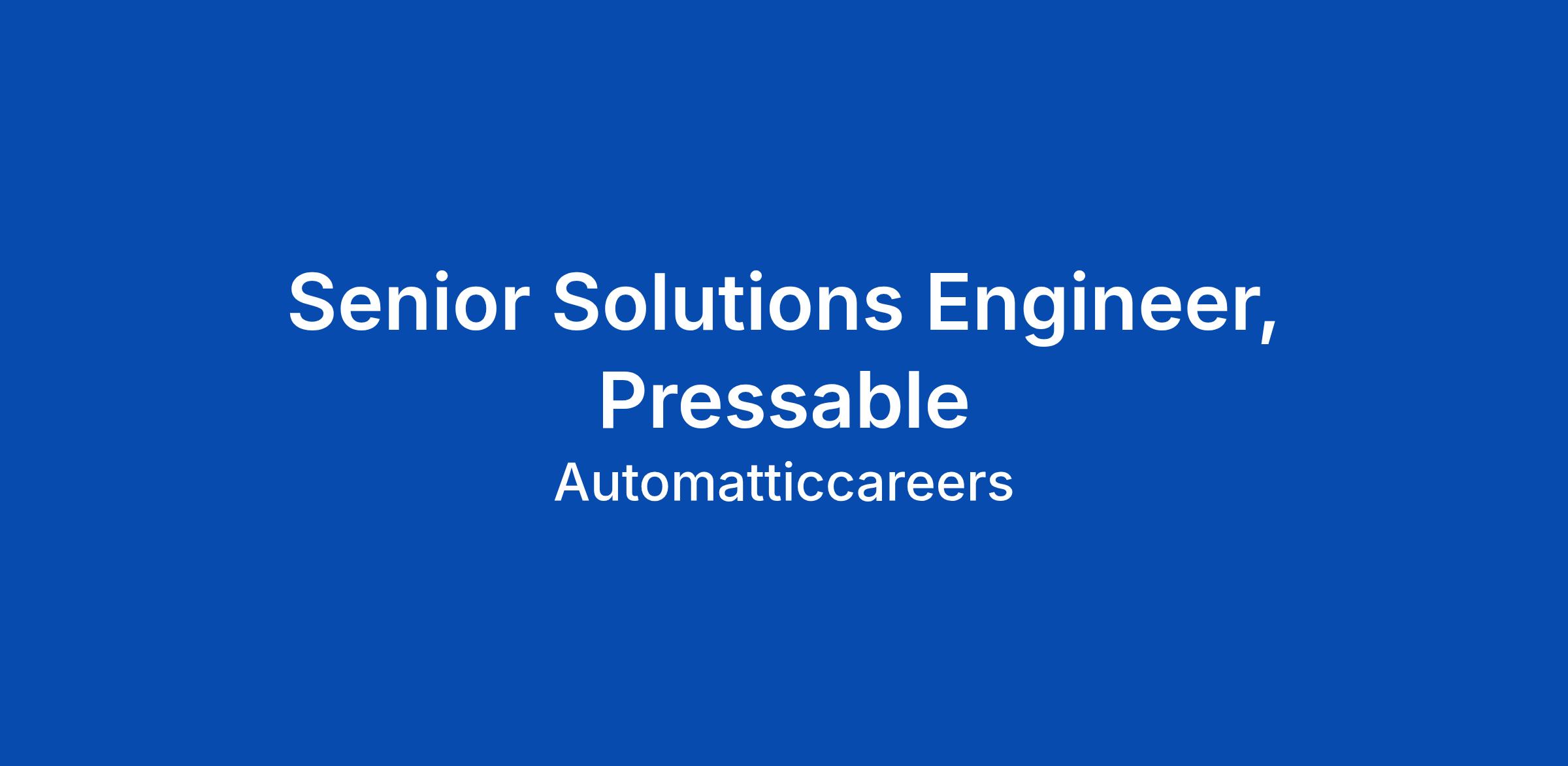 Pressable is hiring a Senior Solutions Engineer to own our pre-sales engineering motion and help us win and onboard the right customers.
