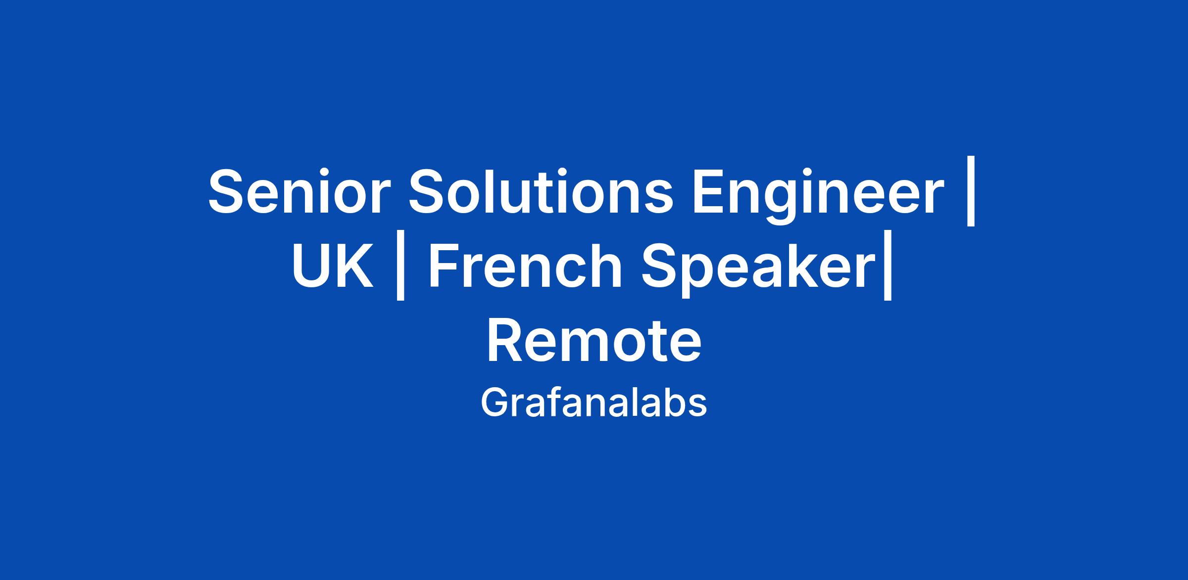 Senior Solutions Engineer | UK | French Speaker| Remote