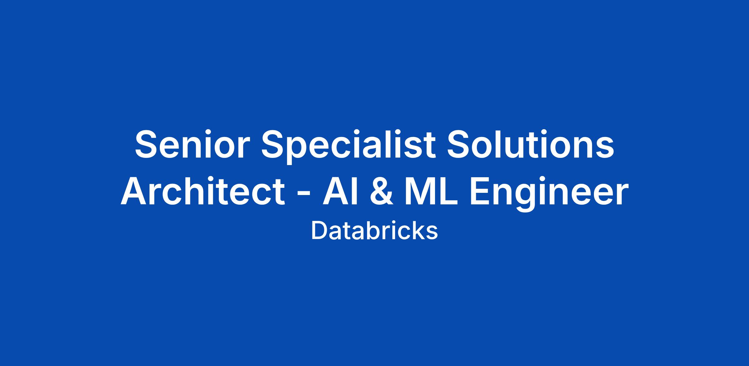 As a Sr Specialist Solutions Architect (SSA) - ML & AI Engineer, you will be the trusted technical ML & AI expert to both Databricks customers and the Field Engineering organization. You will work with Solution Architects to guide enterprise and strategic customers in architecting production-grade ML & AI applications on Databricks, while aligning their technical roadmap with the continually evolving Databricks Data Intelligence Platform. You will continue to strengthen your technical skills through applying cutting edge technologies in GenAI, MLOps, and ML more broadly, expanding your impact through mentorship, and establishing yourself as an AI thought leader.