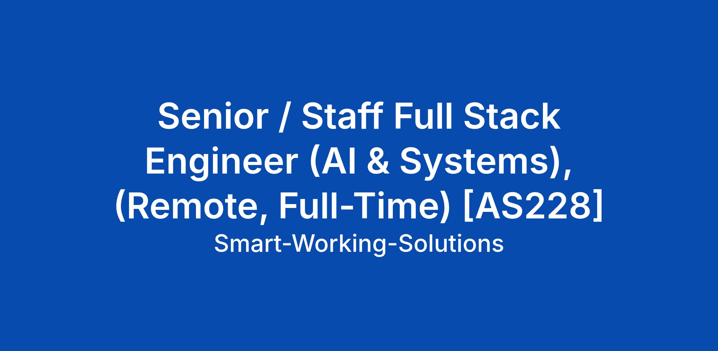 Senior / Staff Full Stack Engineer (AI & Systems), (Remote, Full-Time) [AS228]