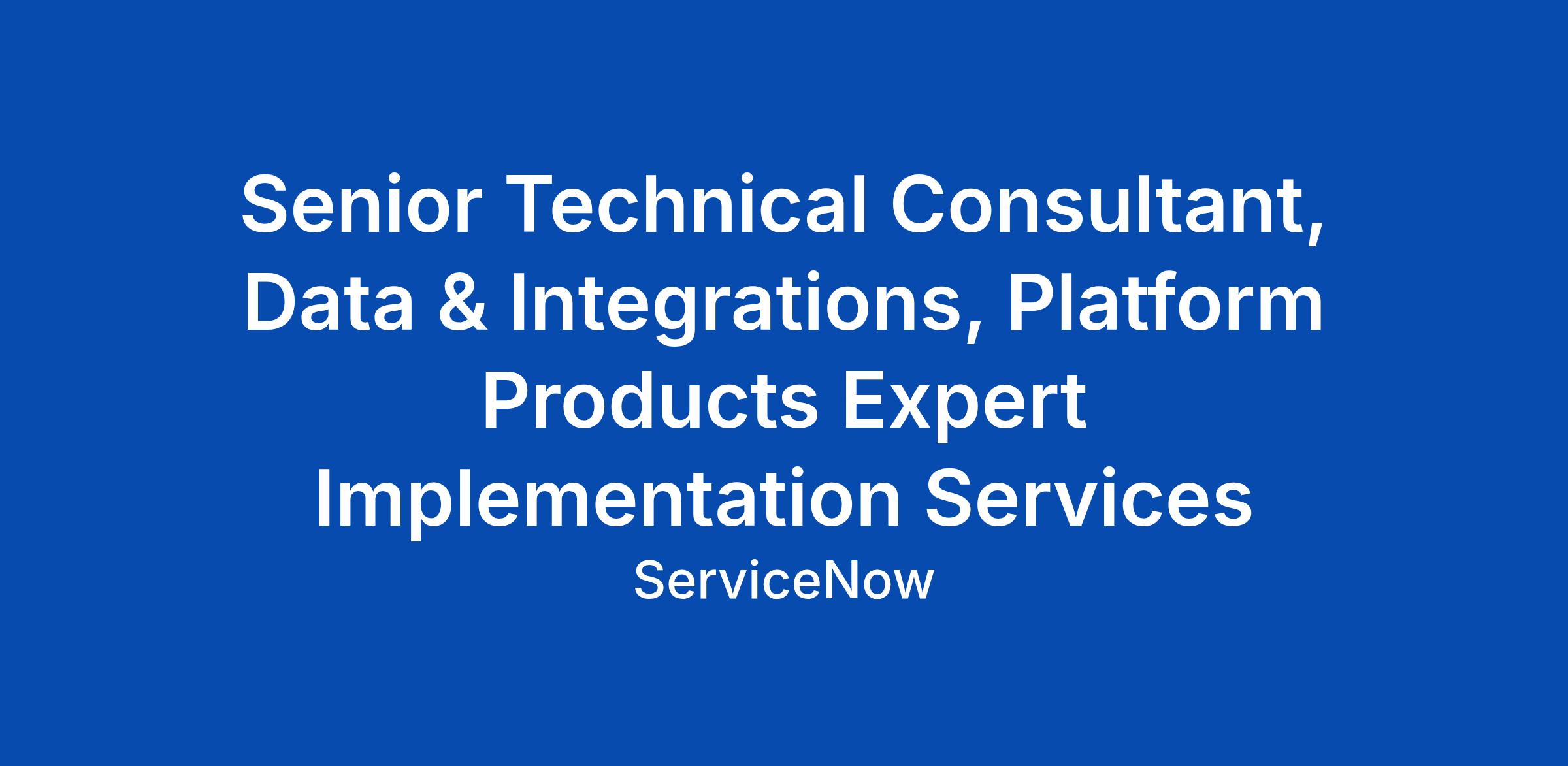 Senior Technical Consultant, Data & Integrations, Platform Products Expert Implementation Services