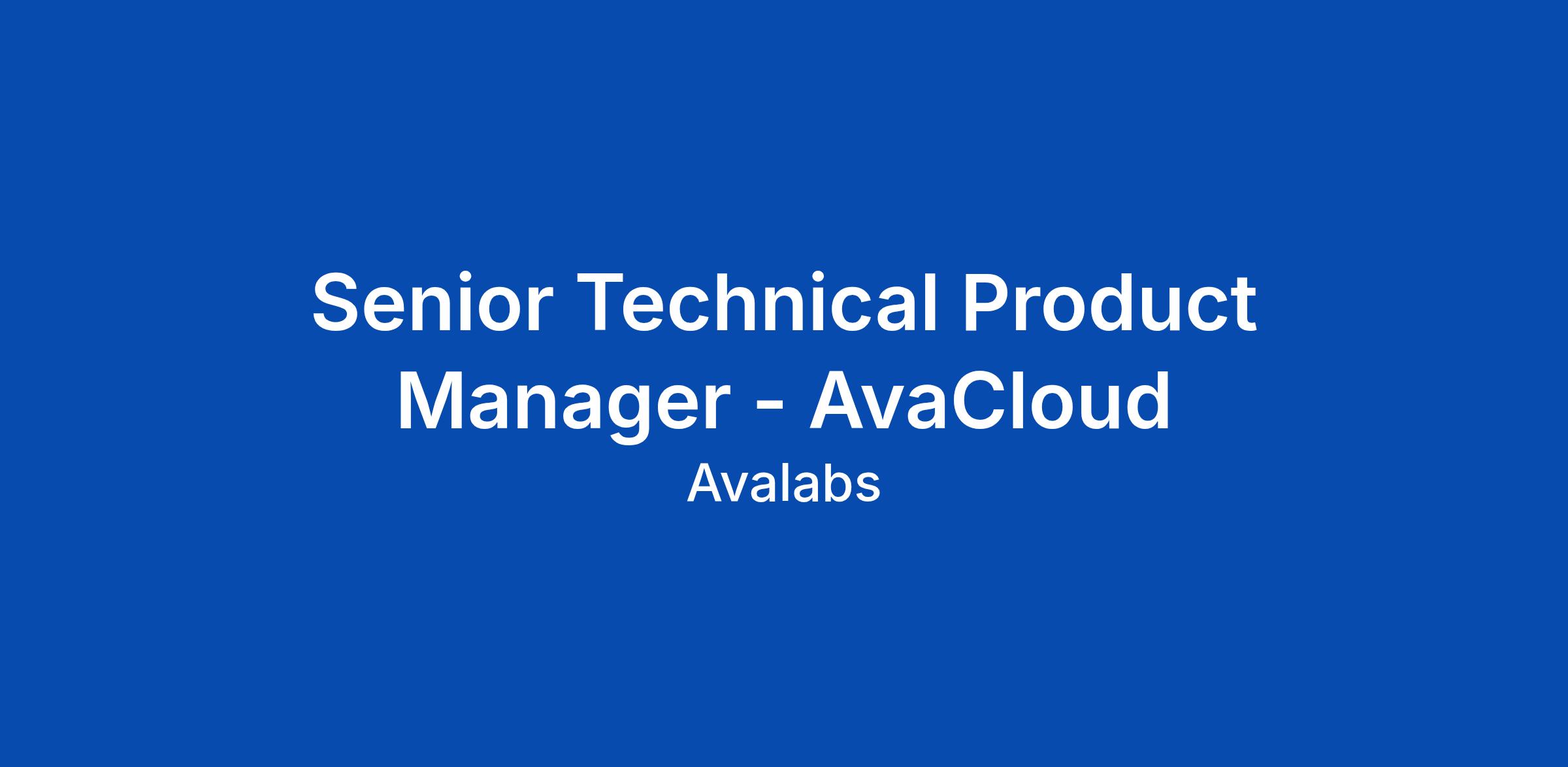 Join the AvaCloud team at Ava Labs as a Senior Technical Product Manager. AvaCloud is revolutionizing how businesses launch, manage, and scale using Avalanche L1s and web3 technologies, making blockchain simple, powerful, and accessible. We've already empowered leading organizations like