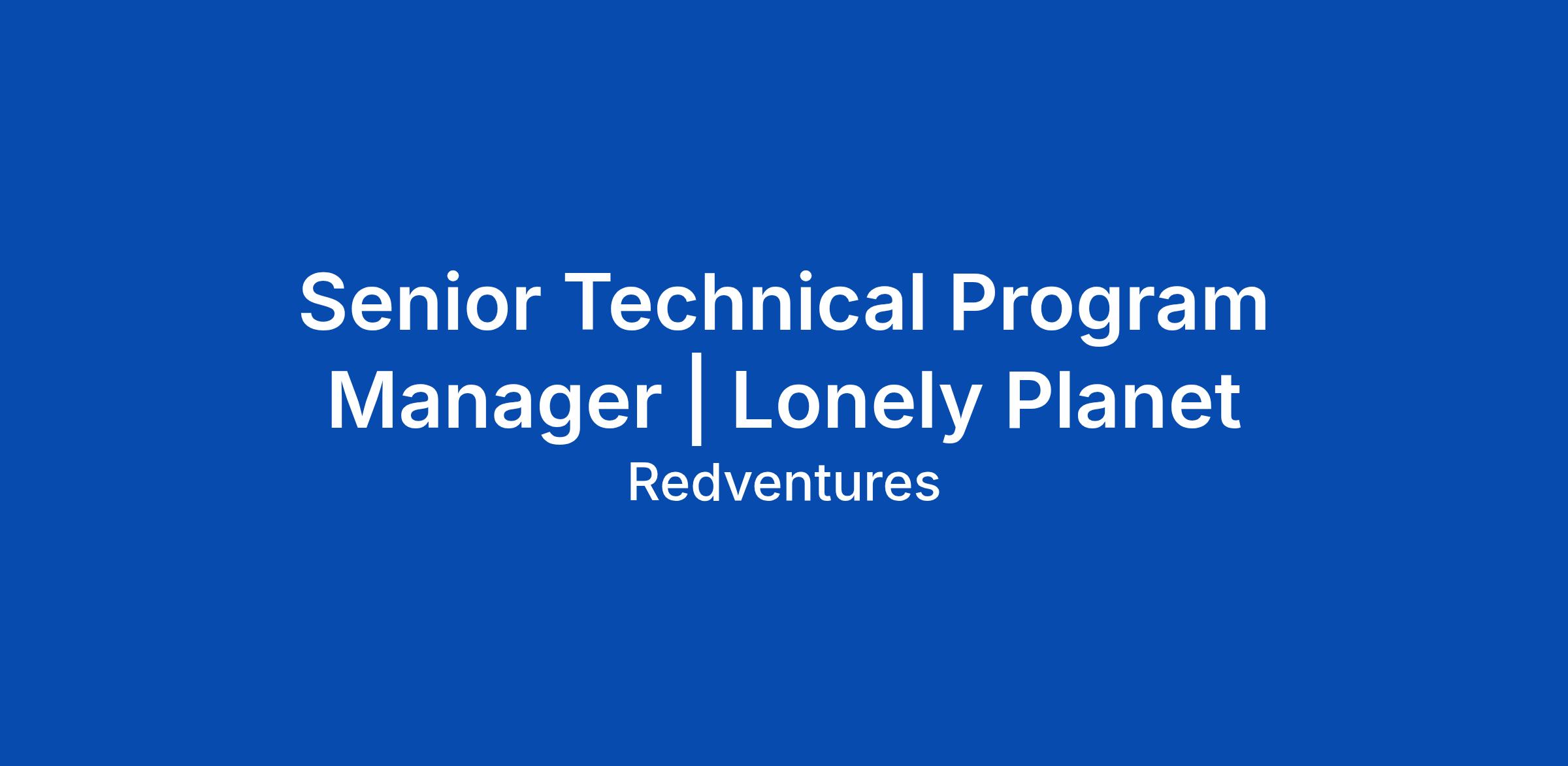 Lonely Planet is building a new generation of digital products that transform how people discover, plan, and experience travel. As we continue to expand across web, mobile, and backend platforms, we are looking for aΒ Senior Technical Program ManagerΒ to help drive alignment and execution across product and engineering.