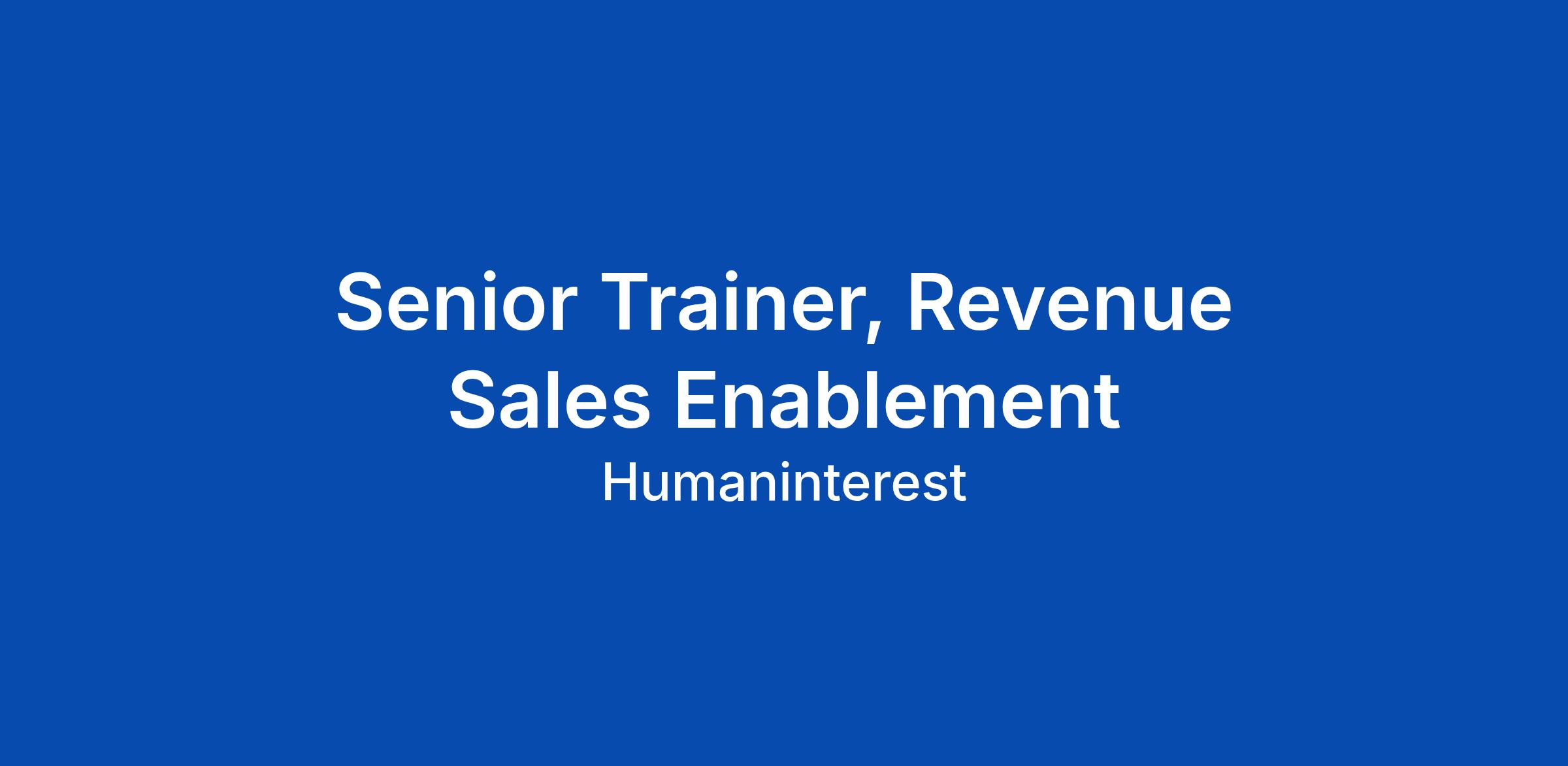 Senior Trainer, Revenue Sales Enablement