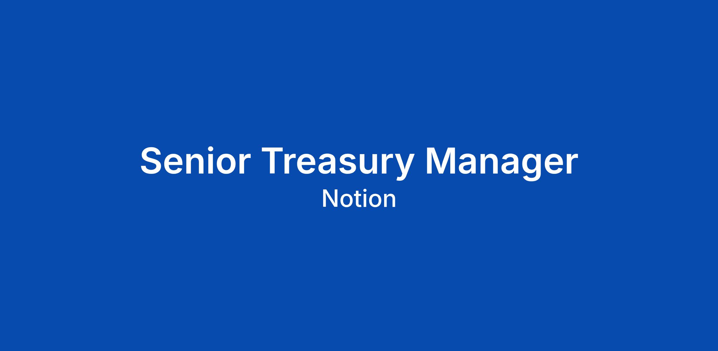 We are seeking an experienced strategic Treasury Manager to join our Finance team. In this role, you will be responsible for managing Notion's global treasury operations, cash management, forecasting, investments, and banking relationships. You will play a crucial role in optimizing our capital structure, ensuring liquidity, and implementing risk management strategies.