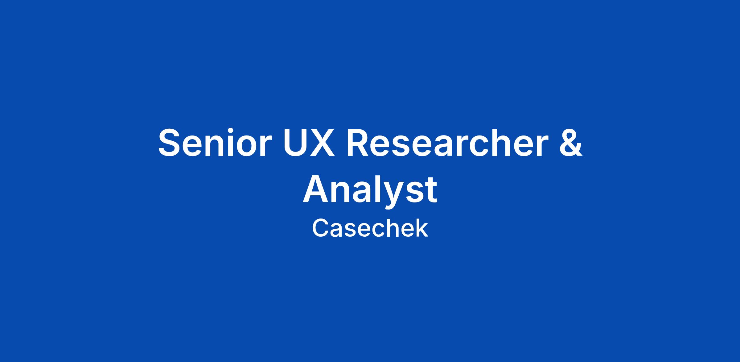 In this role, you will own the research and analysis work that sits at the center of Casechekβs product decisions. As a Senior UX Researcher & Analyst, you will own the entire design function at Casechek. You will lead the full arc from research through to handoff-ready designs: conducting user research, synthesizing what it means, forming a prioritized recommendation, and producing the wireframes, prototypes, and design specs that Engineering builds from. Research and analysis are what differentiate this role from a traditional designerβwe expect you to bring a point of view, not just execute dire