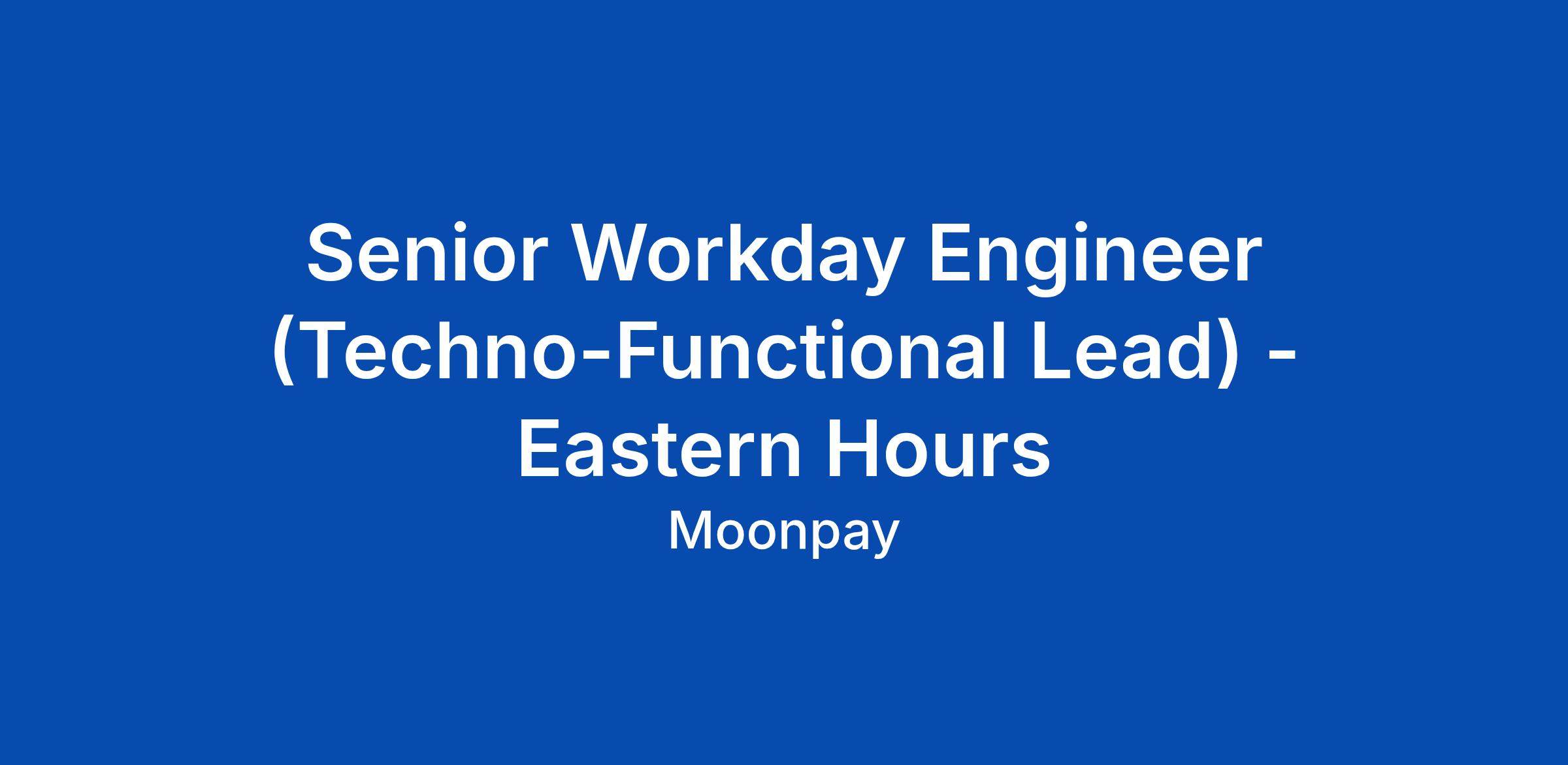 Senior Workday Engineer (Techno-Functional Lead) - Eastern Hours