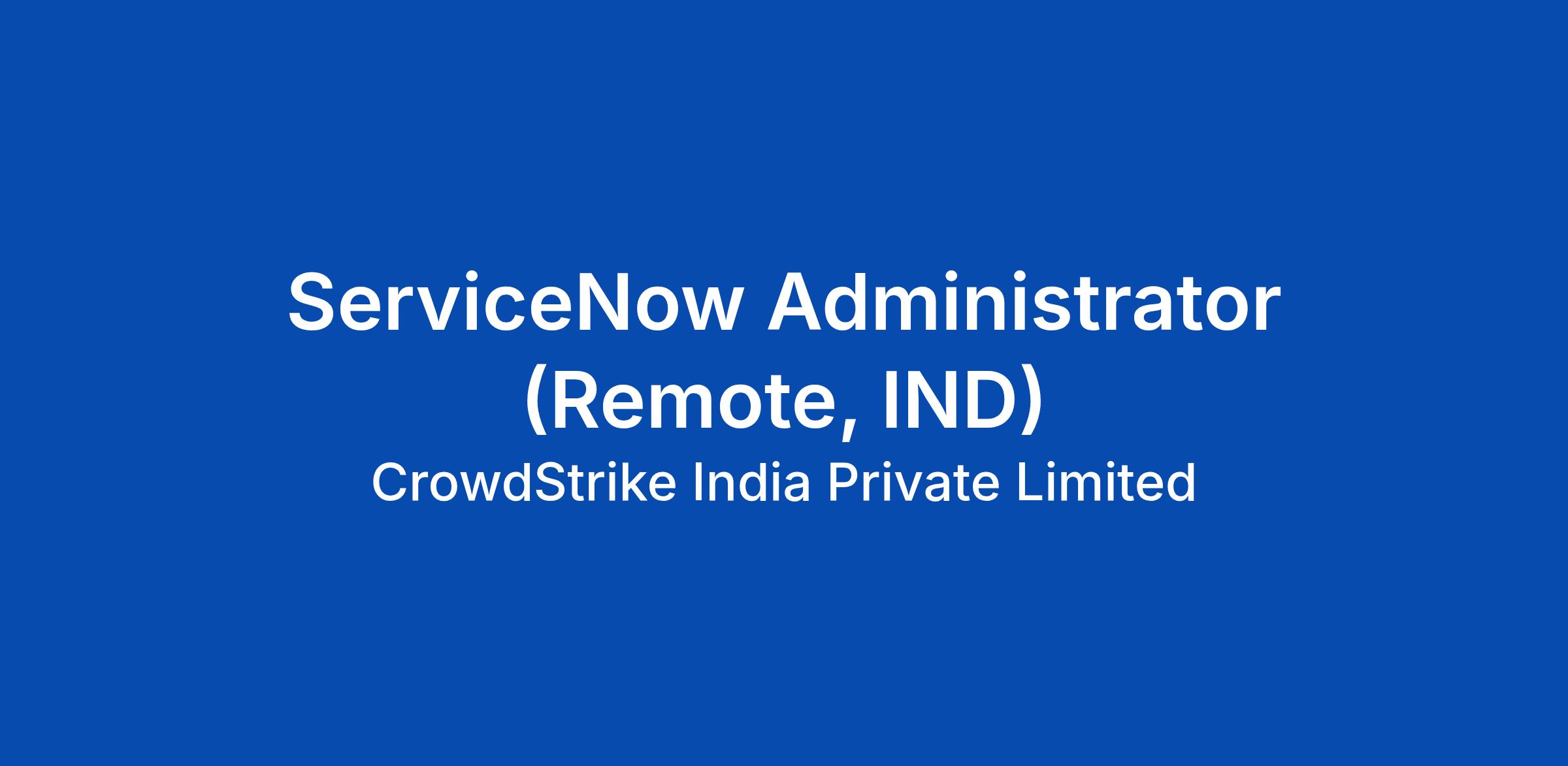 CrowdStrike IT is growing and seeking a dynamic ServiceNow Administrator / Developer to join the ServiceNow Support Team. Along with your team members, you will be responsible for the overall ServiceNow experience at CrowdStrike.
