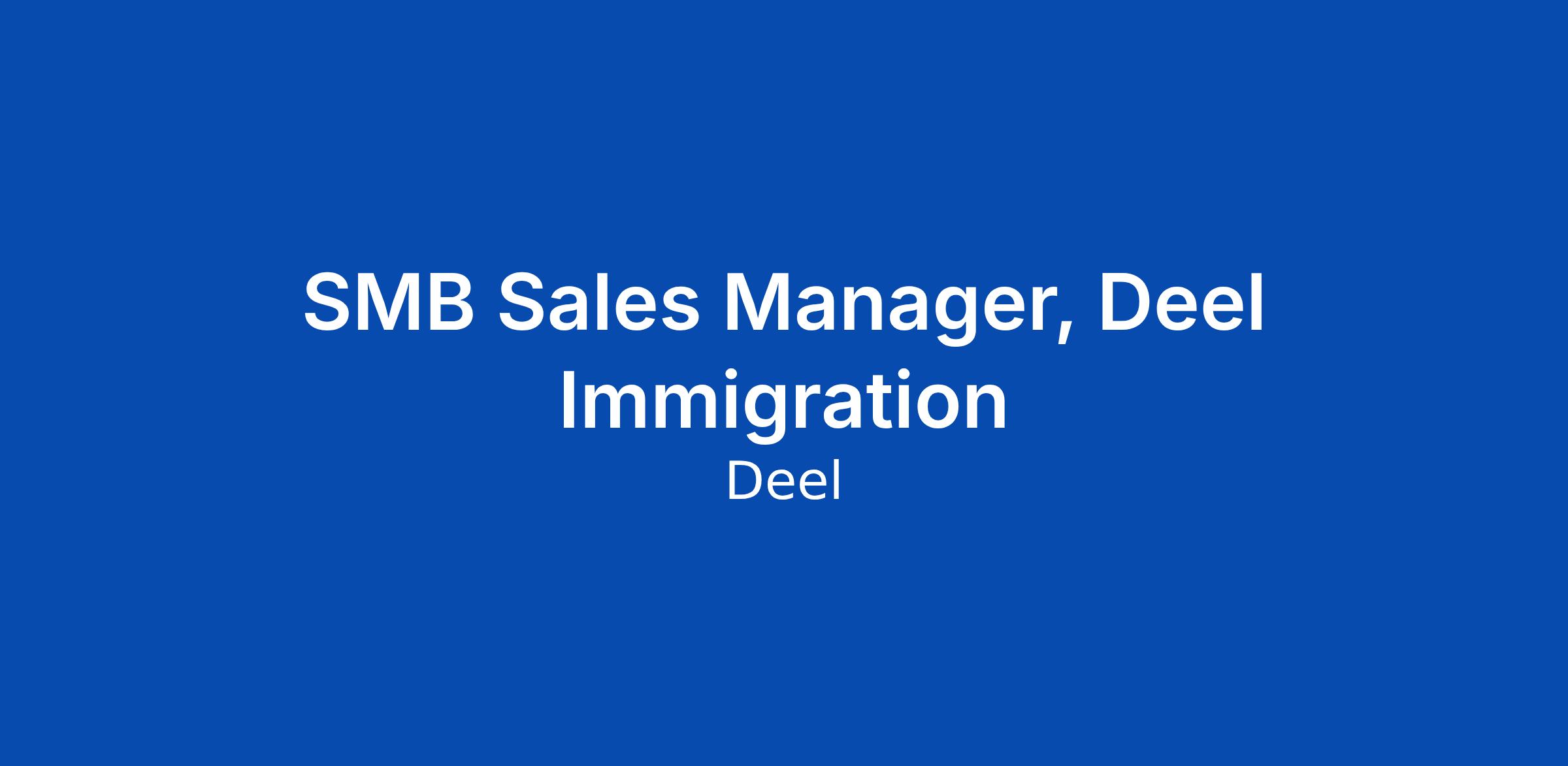 SMB Sales Manager, Deel Immigration