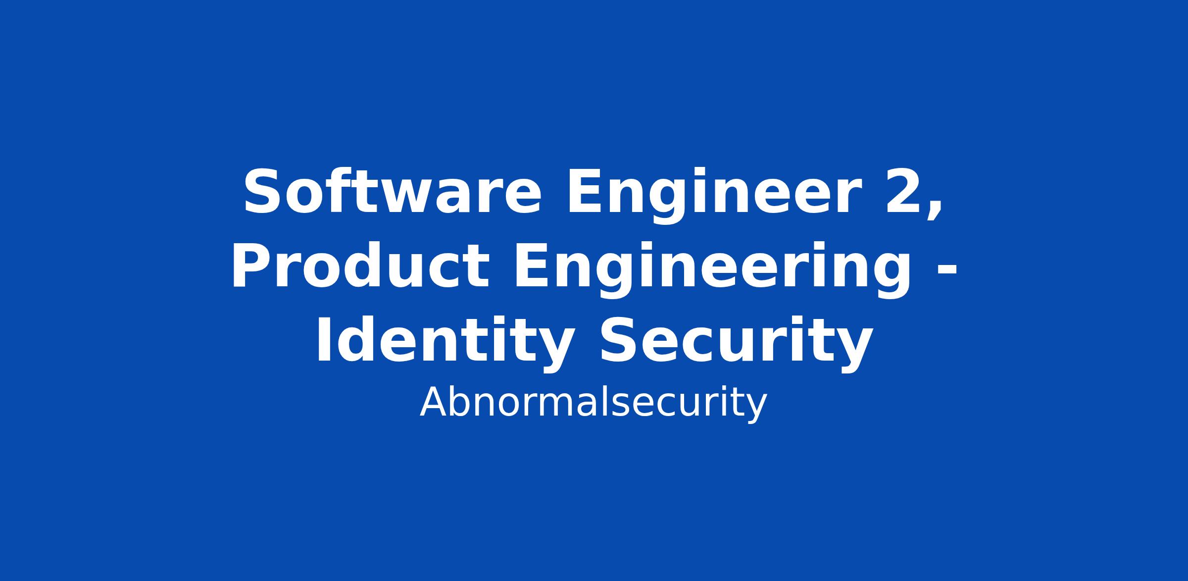 Software Engineer 2, Product Engineering - Identity Security
