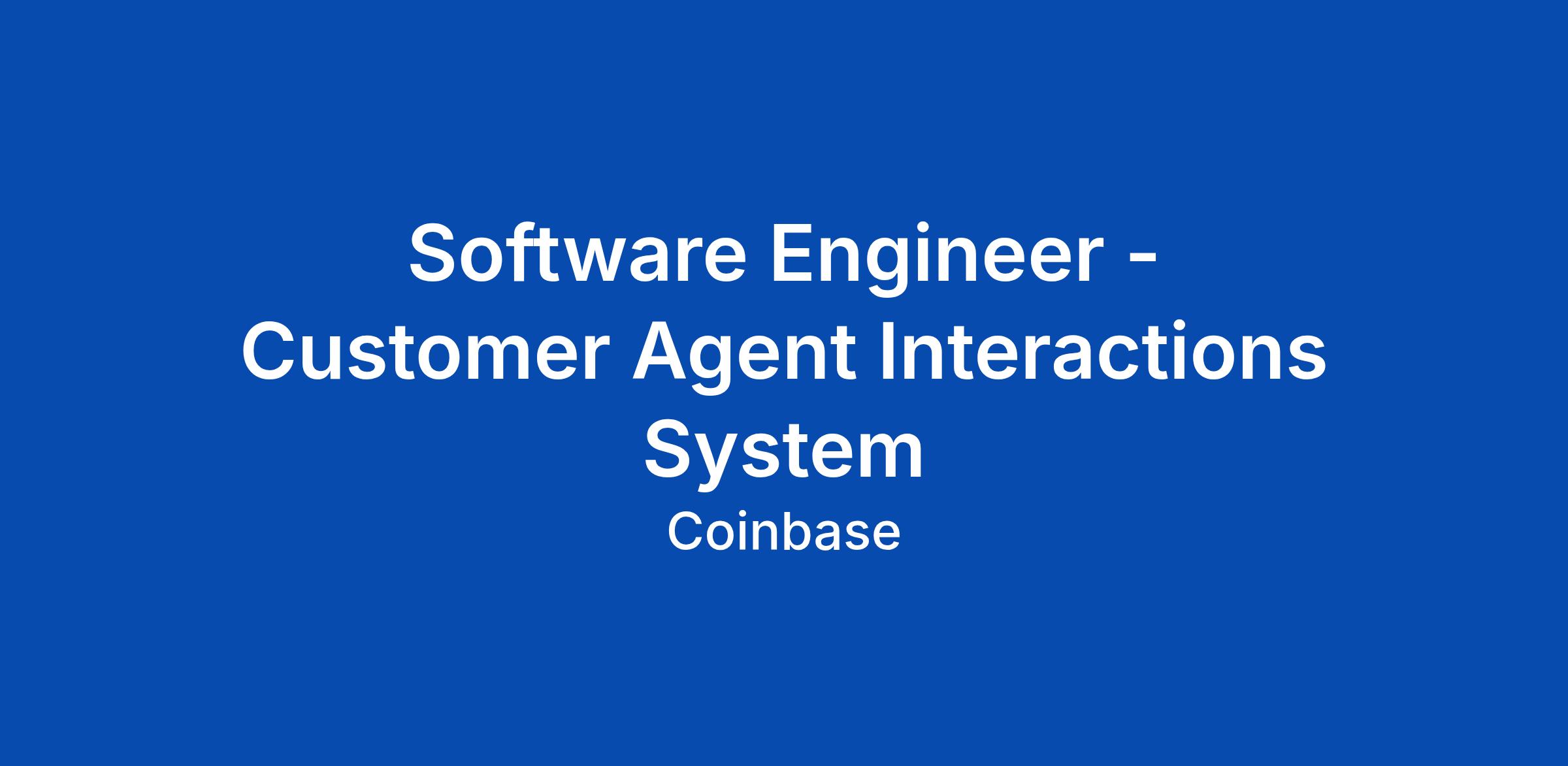 Software Engineer - Customer Agent Interactions System