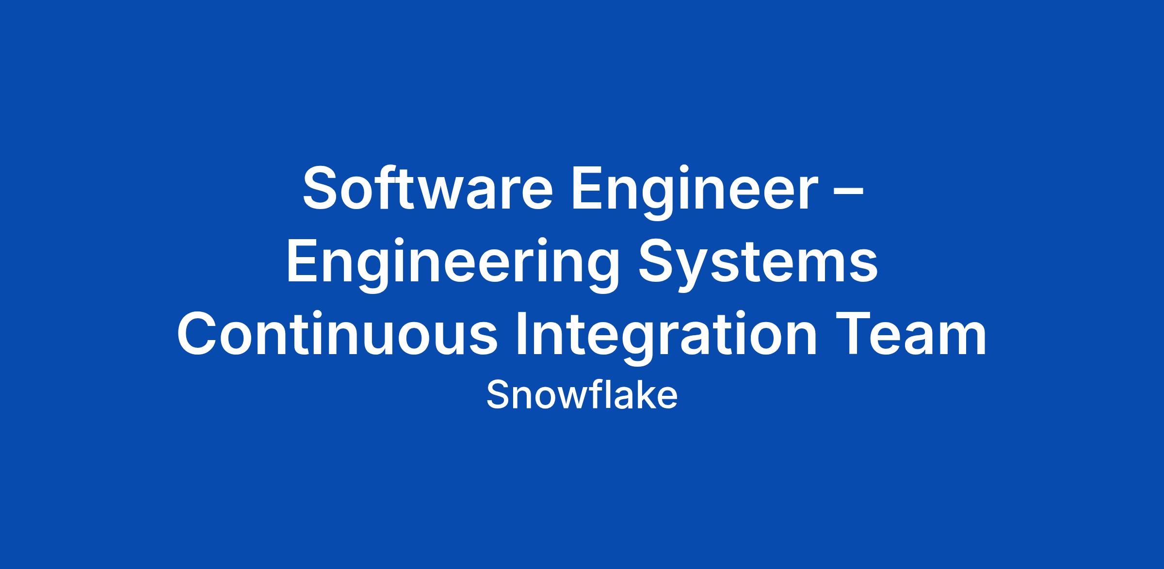 At Snowflake, we are powering the era of the agentic enterprise. To usher in this new era, we seek AI-native thinkers across every function who are energized by the opportunity to reinvent how they work. You don’t just use tools; you possess an innate curiosity, treating AI as a high-trust collaborator that is core to how you solve problems and accelerate your impact. We look for low-ego individuals who thrive in dynamic and fast-moving environments and move with an experimental mindset — who rapidly test emerging capabilities to discover simpler, more powerful ways to deliver results. At Snowflake, your role isn't just to execute a function, but to help redefine the future of how work gets done. We’re hiring a seasoned Senior Software Engineer to help us build a world class developer platform to fuel the Snowflake Data Cloud. As an engineer in the Continuous Integration team within ES (Engineering Systems), you will play a central role in setting the technical standard for and delivering the CI service that powers our repositories. Together with industry-wide experts in distributed systems, cross-cloud development and engineering excellence, you will evolve our developer infrastru... Click Apply to read the full job description.