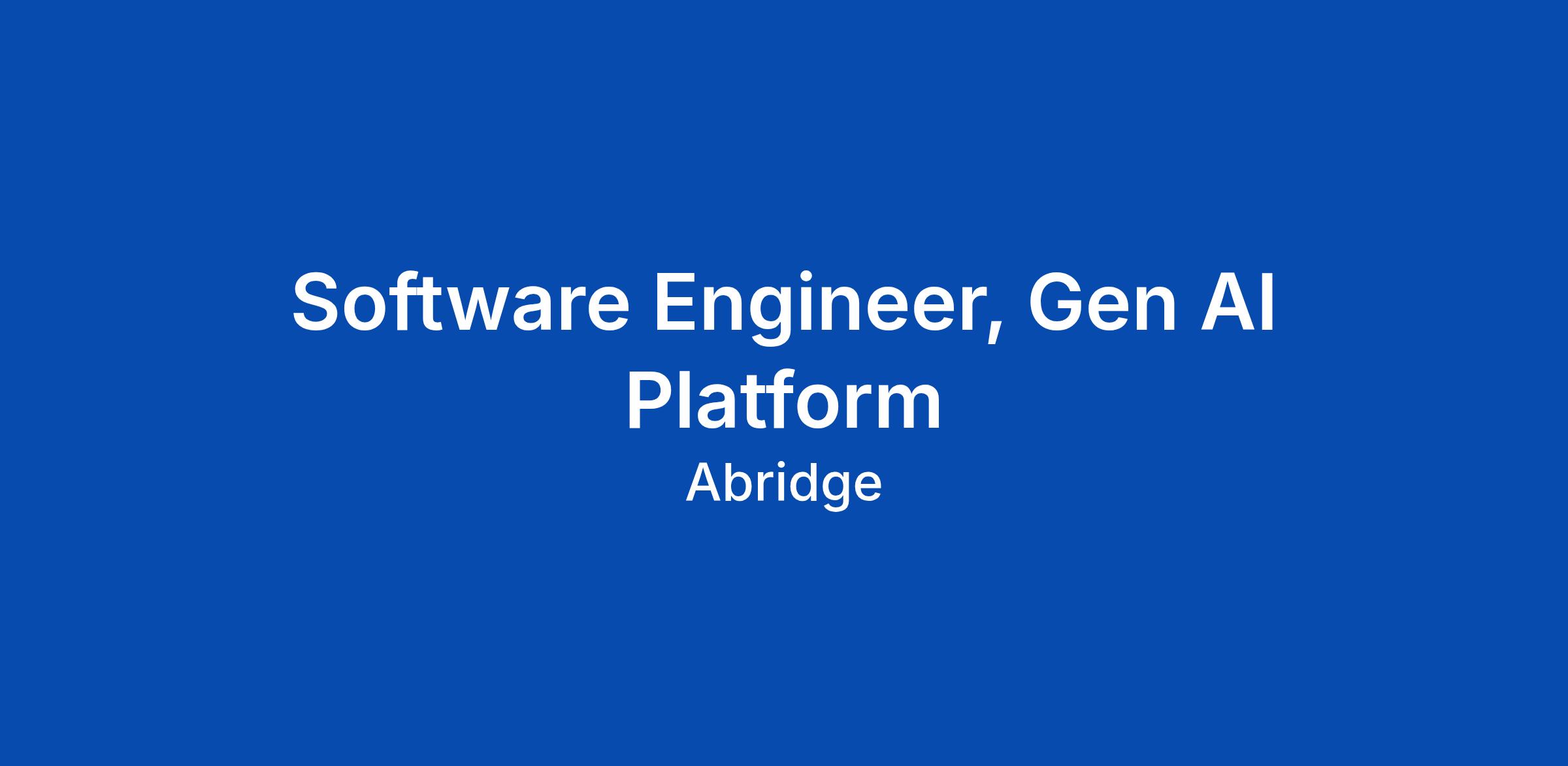 Software Engineer, Gen AI Platform