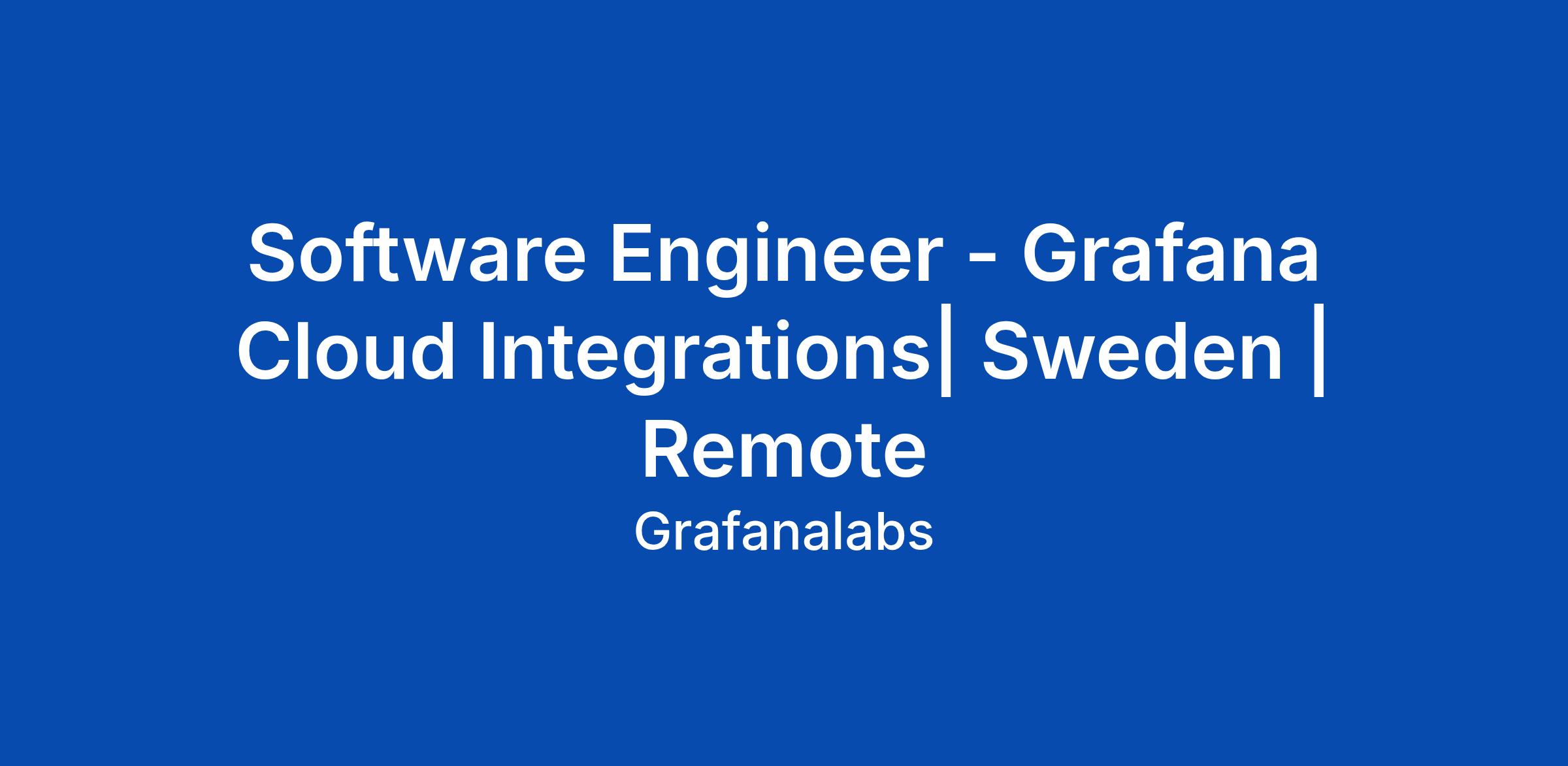 Software Engineer - Grafana Cloud Integrations| Sweden | Remote