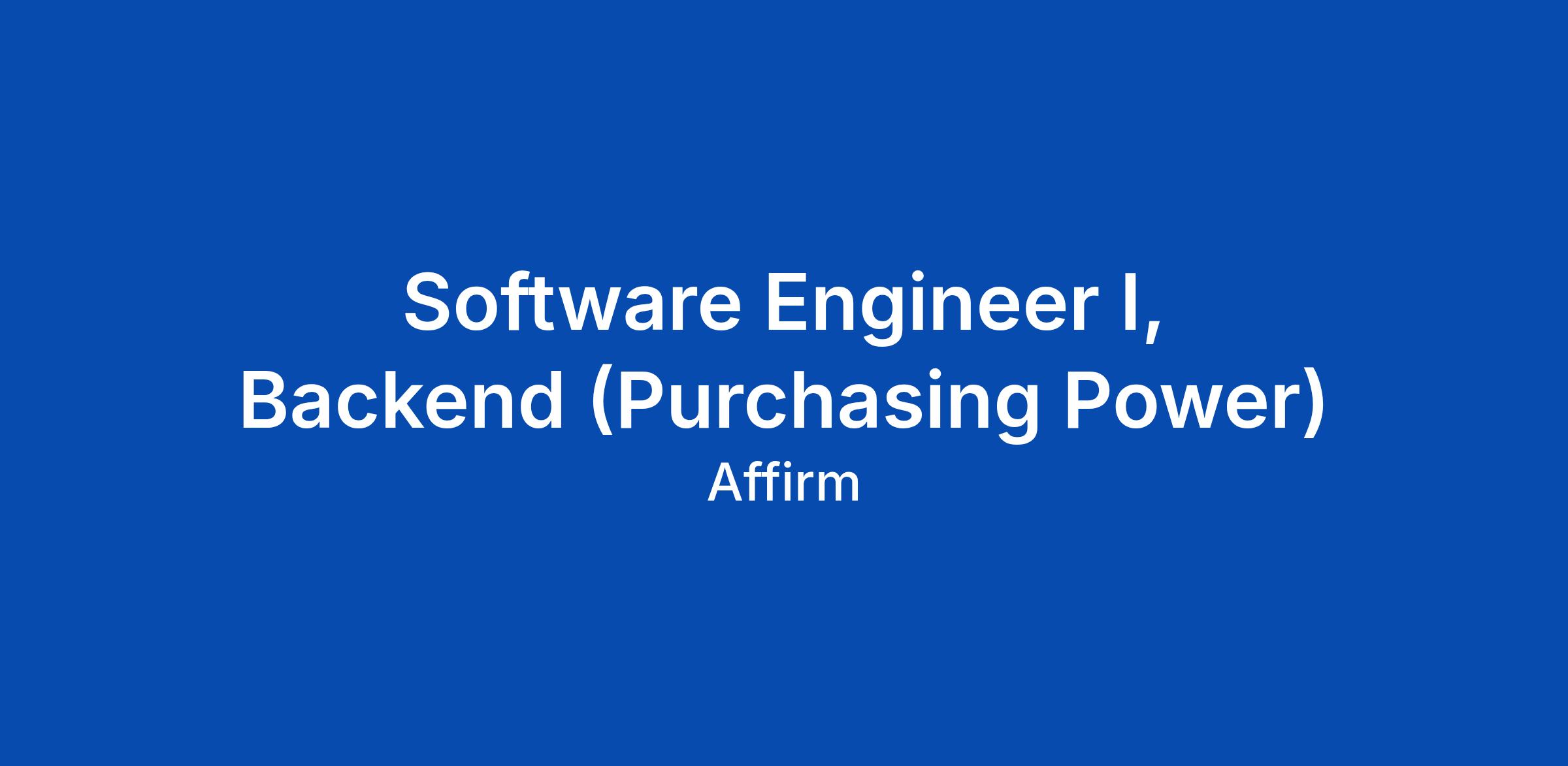 Software Engineer I, Backend (Purchasing Power)