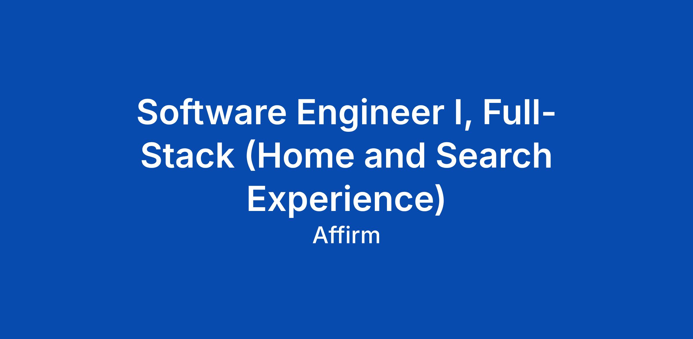 Software Engineer I, Full-Stack (Home and Search Experience)
