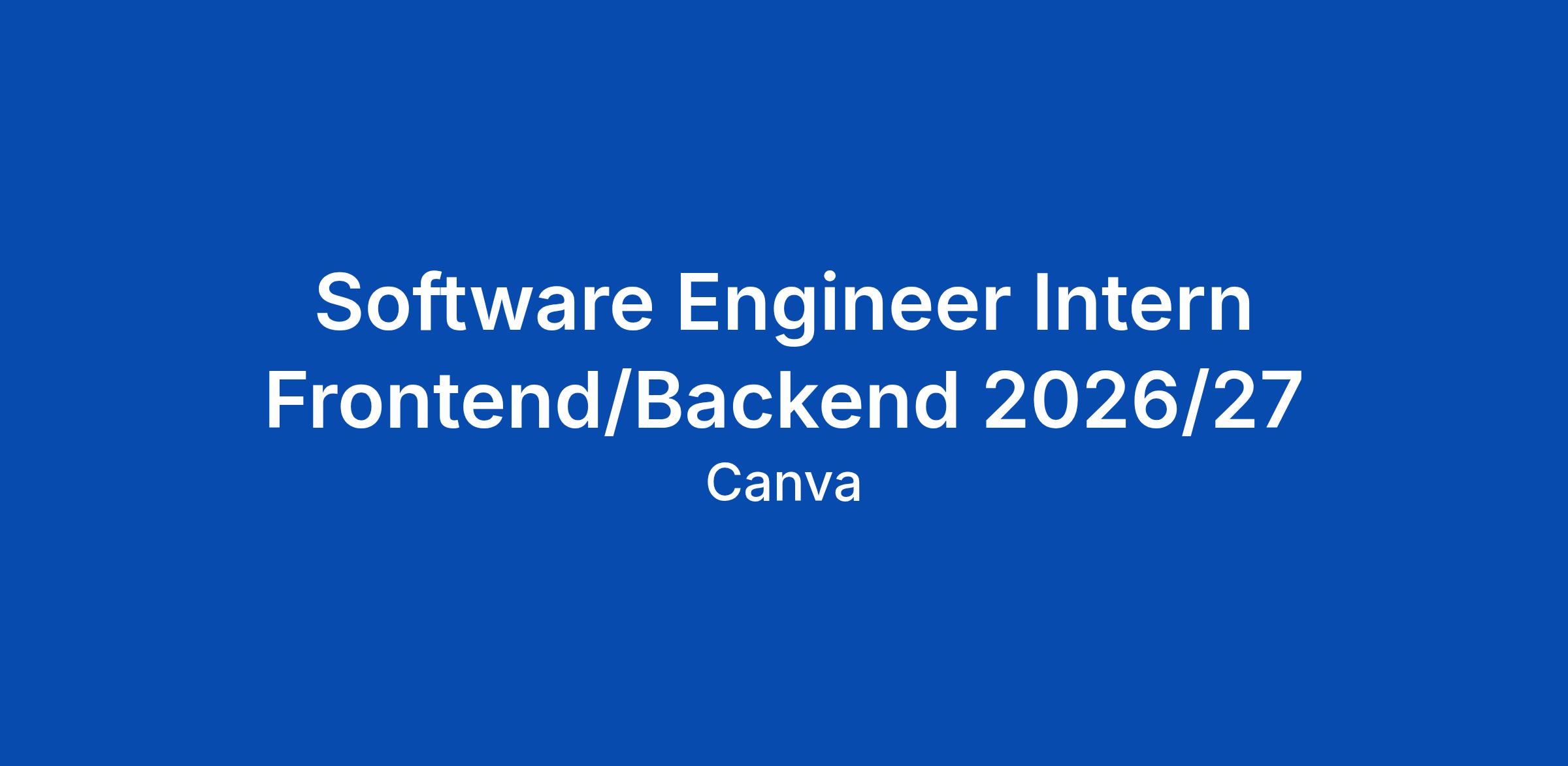 Software Engineer Intern Frontend/Backend 2026/27