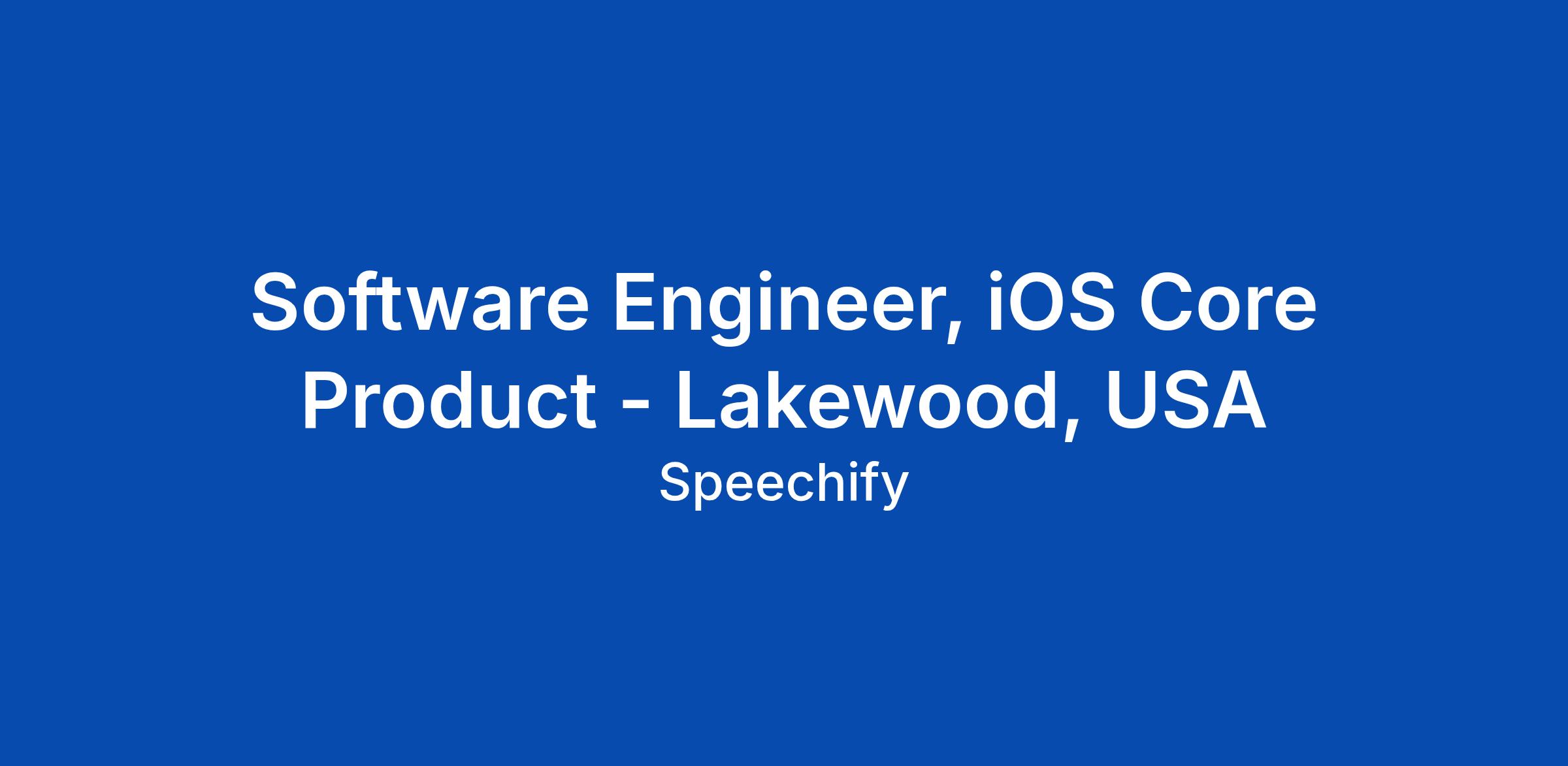 Software Engineer, iOS Core Product - Lakewood, USA