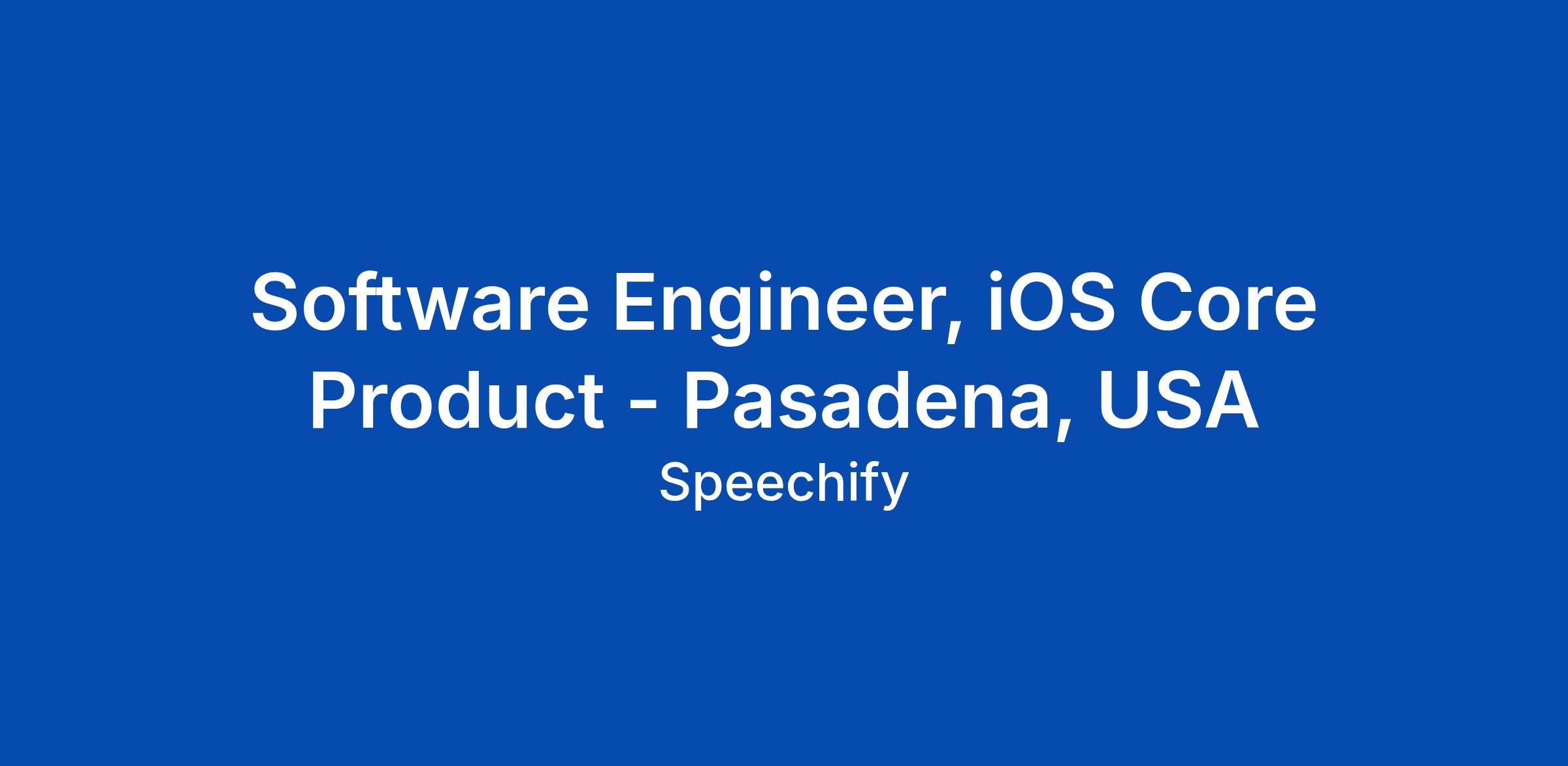 Software Engineer, iOS Core Product - Pasadena, USA