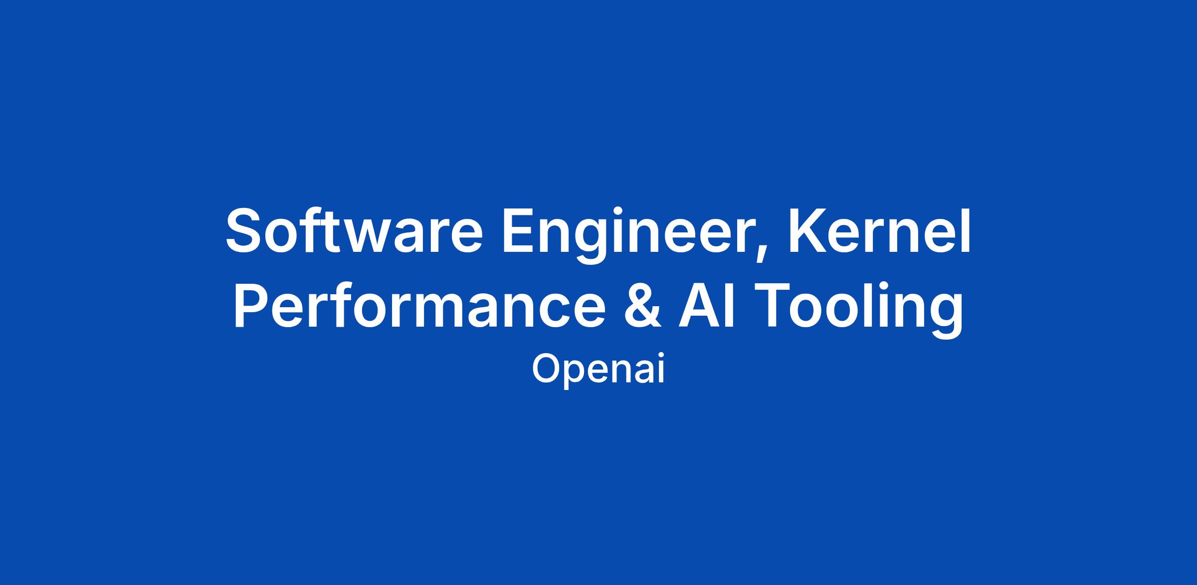 About the Team OpenAIβs Hardware organization develops silicon and system-level solutions designed for the unique demands of advanced AI workloads. The team is responsible for building the next generation of AI-native silicon while working closely with software and research partners to co-design hardware tightly integrated with AI models. In addition to delivering production-grade silicon for OpenAIβs supercomputing infrastructure, the team also creates custom design tools and methodologies that accelerate innovation and enable hardware optimized specifically for AI. About the Role We are looking for a systems-minded engineer to help advance our kernel development, performance engineering, and hardware-software co-design capabilities, with a particular focus on AI-assisted workflows and tooling. This person will work at the intersection of kernel optimization, developer tooling, observability, and research infrastructure, helping us improve both how production kernels are built and optimized, and how future hardware-software systems are designed and evaluated. The role is ideal for someone who is excited by low-level performance work, but also sees AI and automation as powerful too