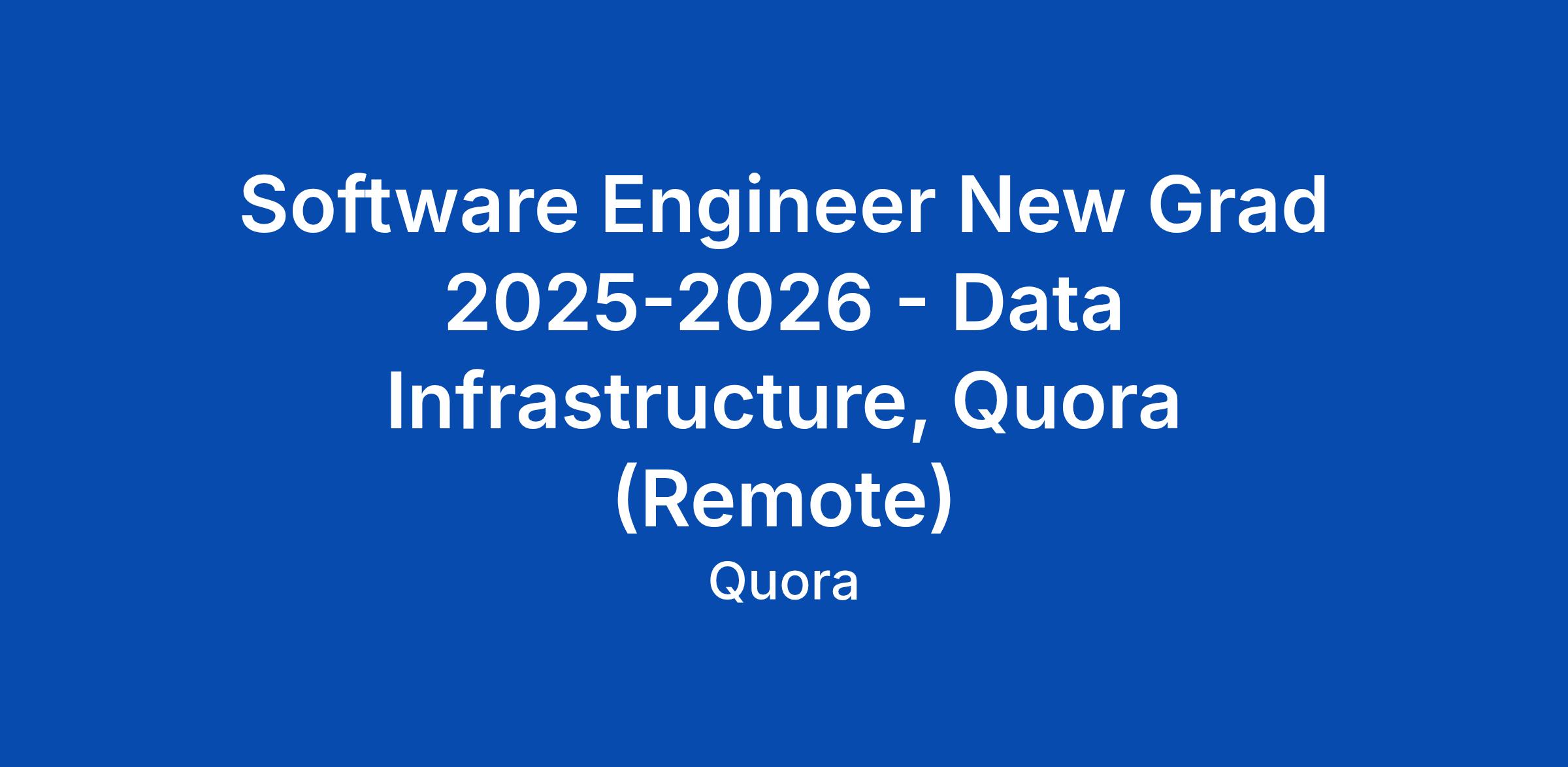 Software Engineer New Grad 2025-2026 - Data Infrastructure, Quora (Remote)