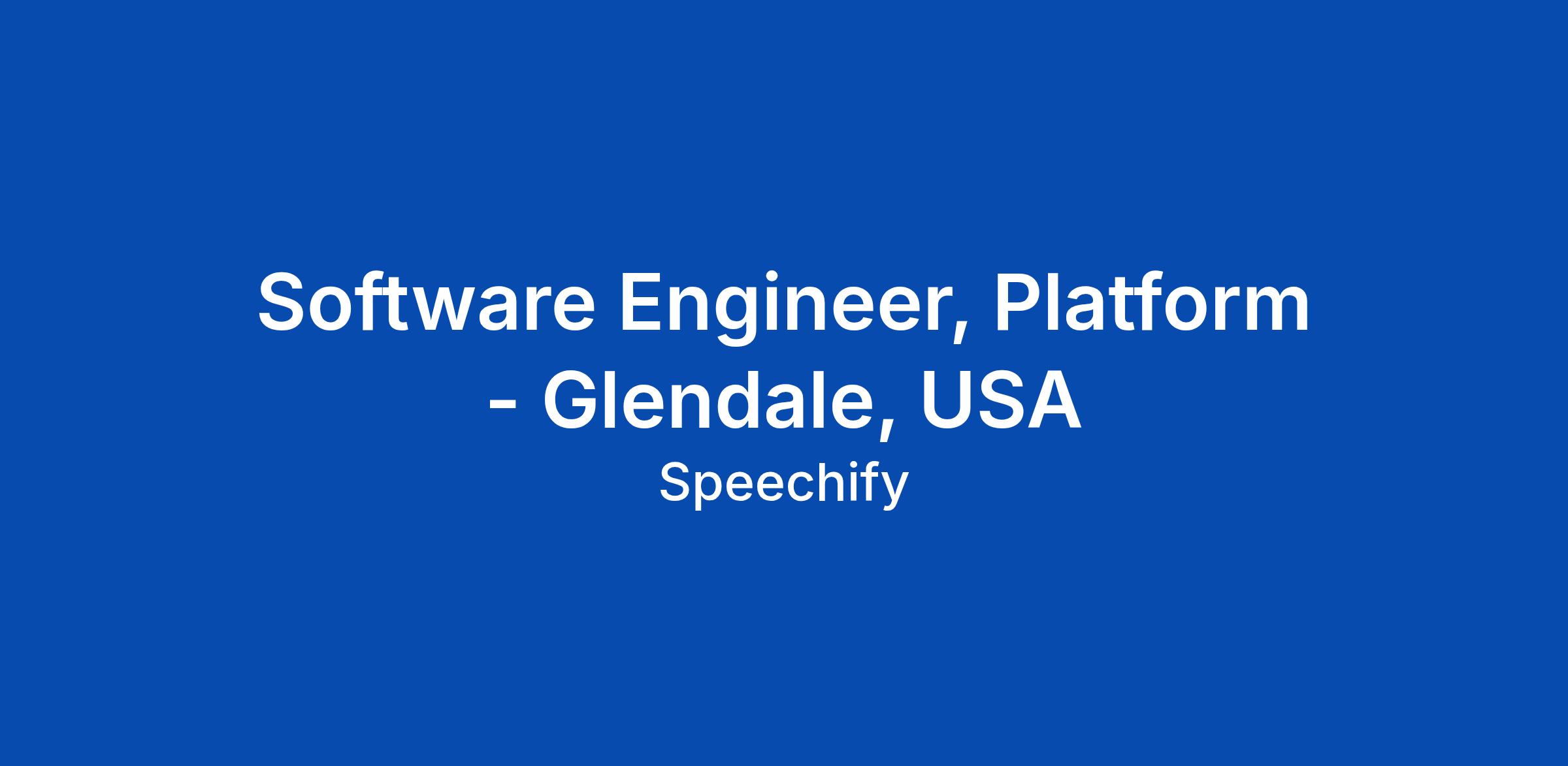 Software Engineer, Platform - Glendale, USA