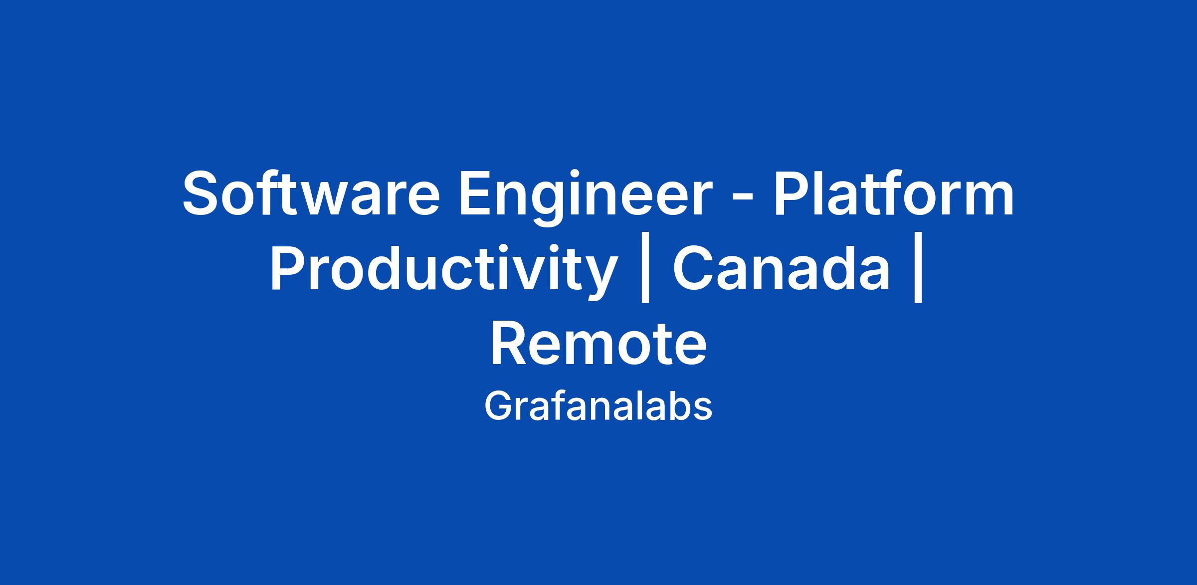 Software Engineer - Platform Productivity | Canada | Remote