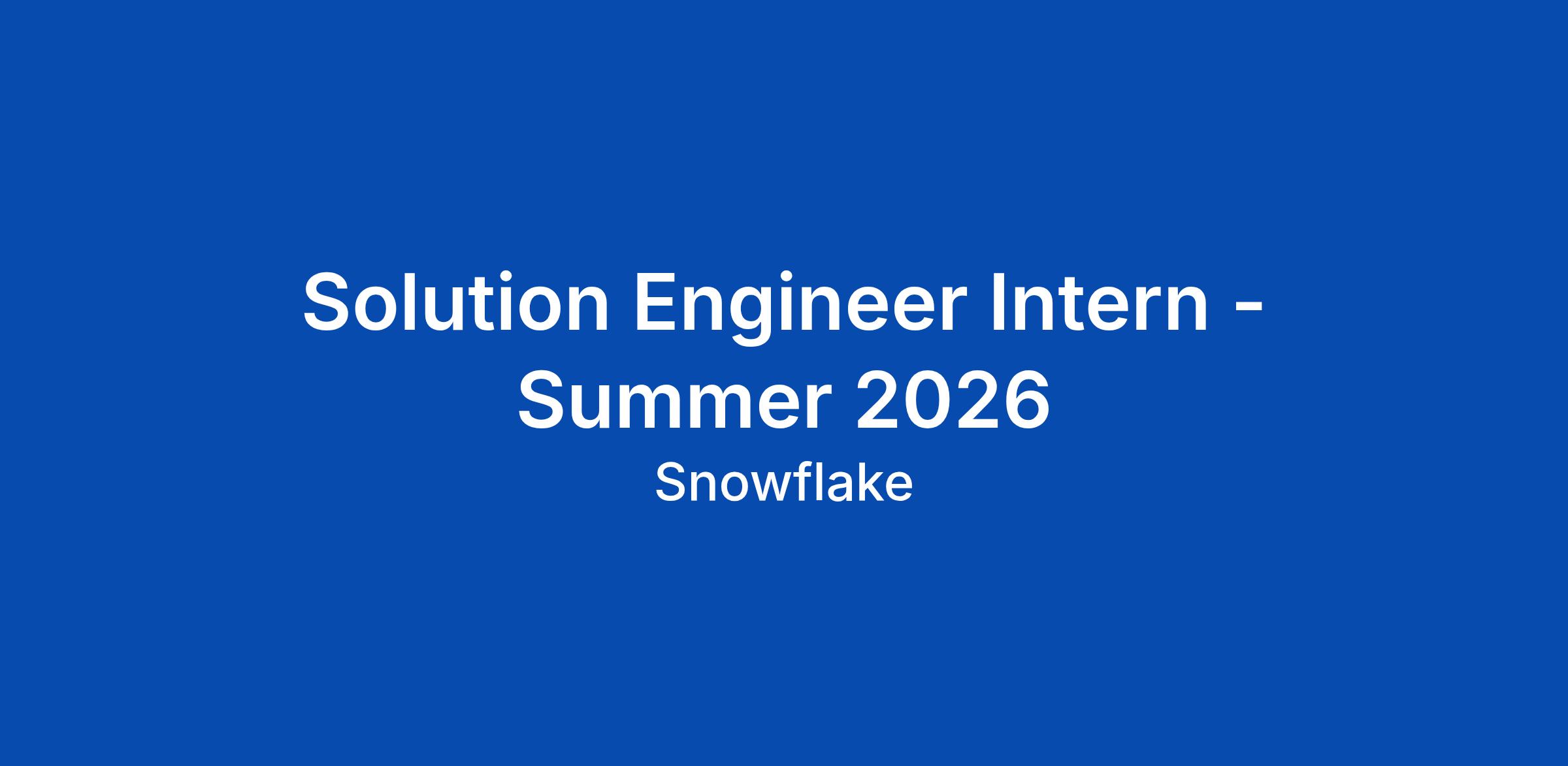 Solution Engineer Intern - Summer 2026