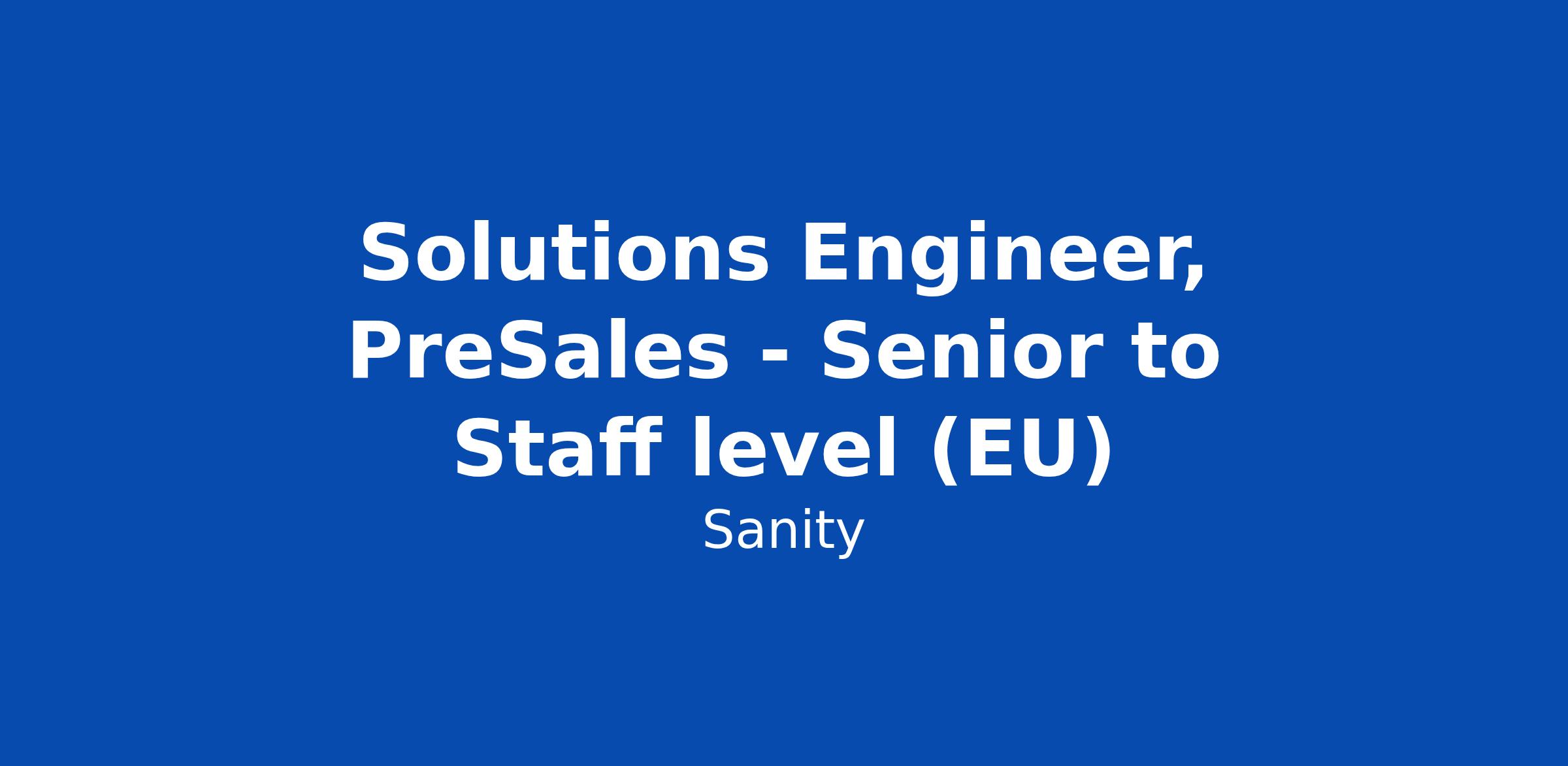 Solutions Engineer, PreSales - Senior to Staff level (EU)