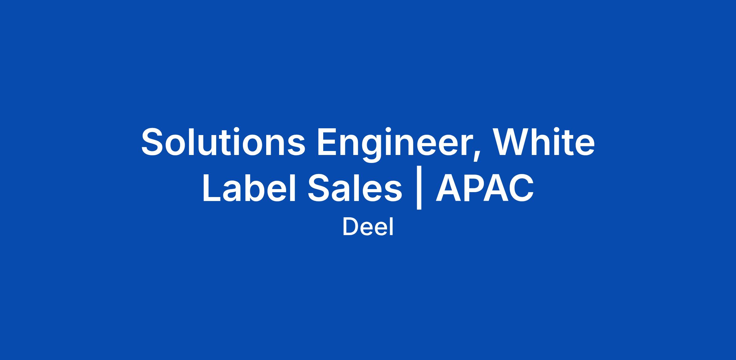 Solutions Engineer, White Label Sales | APAC