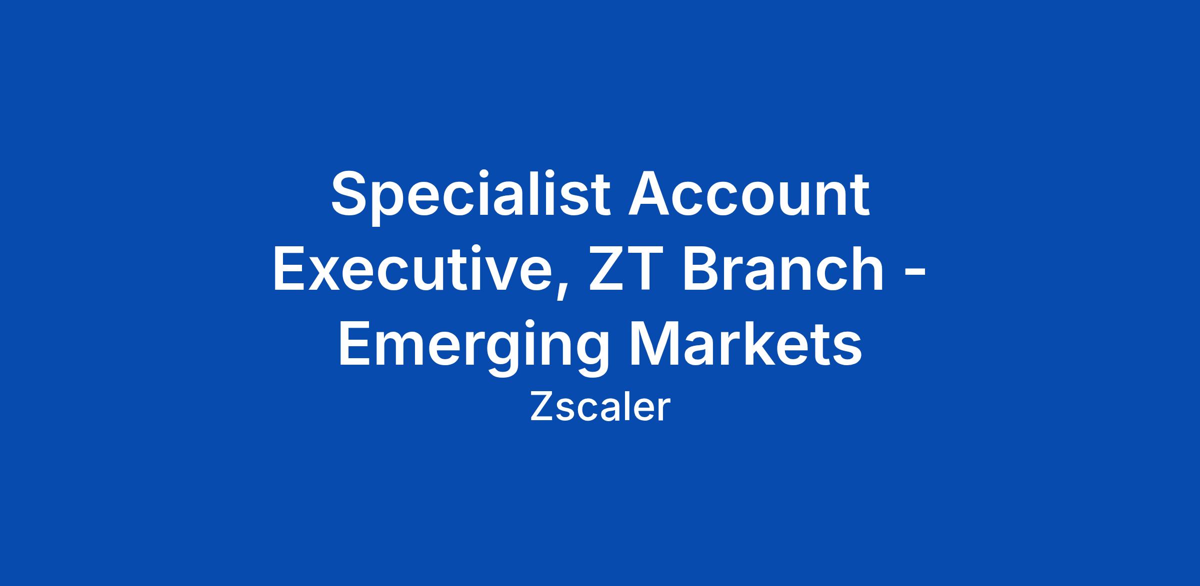 Specialist Account Executive, ZT Branch - Emerging Markets